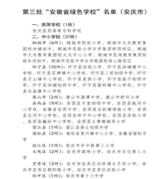 12月9日,安徽省教育厅发布《关于第三批“安徽省绿色学校”入选名单的公示》,我校荣获第三批“安徽省绿色学校”称号。