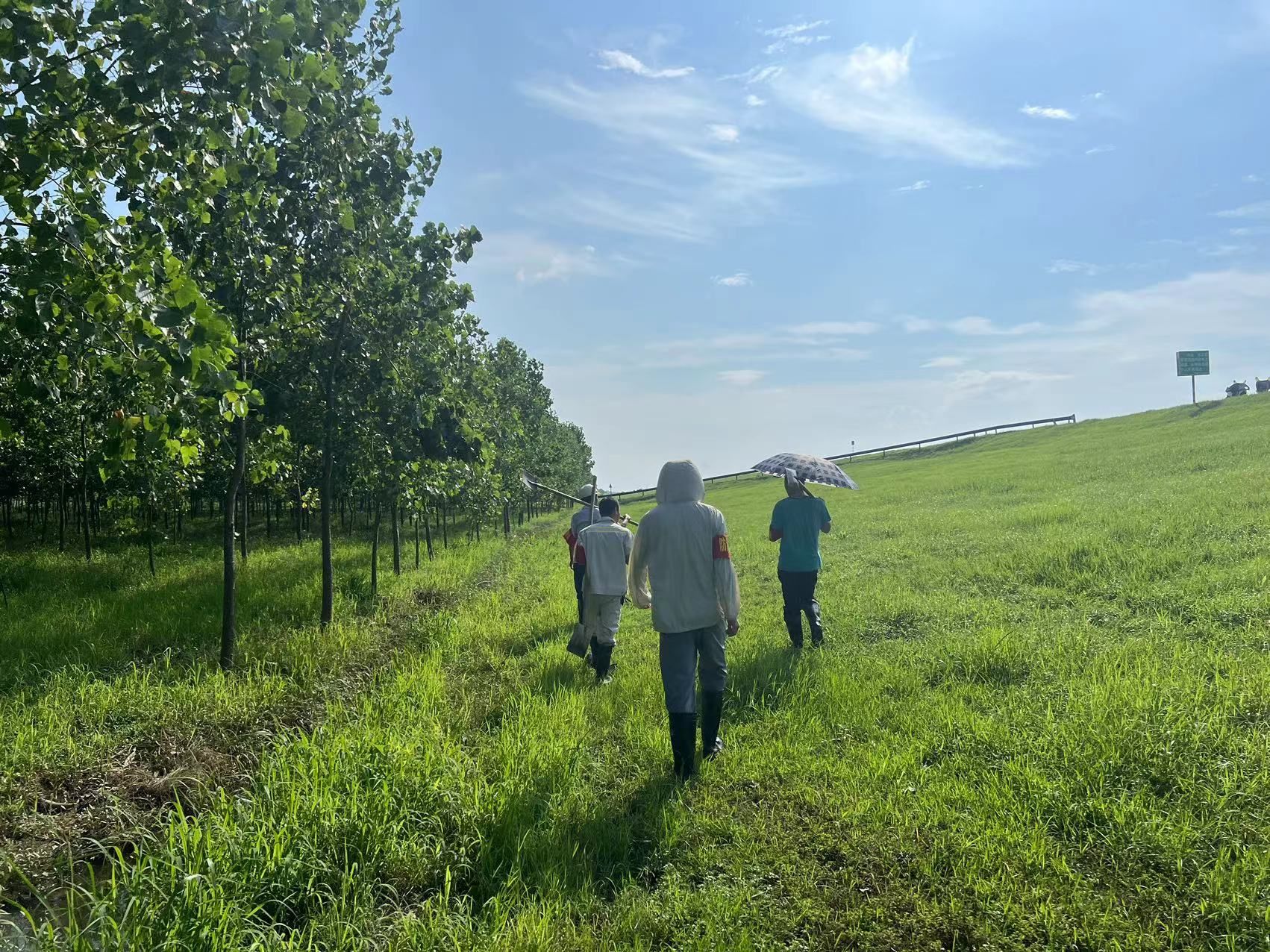 本次我校负责同马大堤皖河农场23-28号棚所在区域的巡堤查险任务,堤坝长度近10公里,突击队成员与属地群众一起定时拉网式巡查负责区域堤坝一遍,以确保每一寸大坝安全。