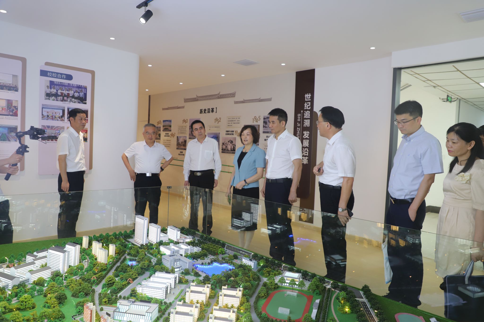王琦一行实地参观了校实训中心、大学生双创中心、重点工程建设工地以及校史馆,随后,双方举行了座谈会。会上,朱庆丰向王琦一行汇报了学校近期工作开展情况,并重点就校园基础设施建设、学科能级提升、产教融合、就业工作,以及升本工作推进等情况做了详细报告。叶林霞就请求支持事项做了补充介绍。