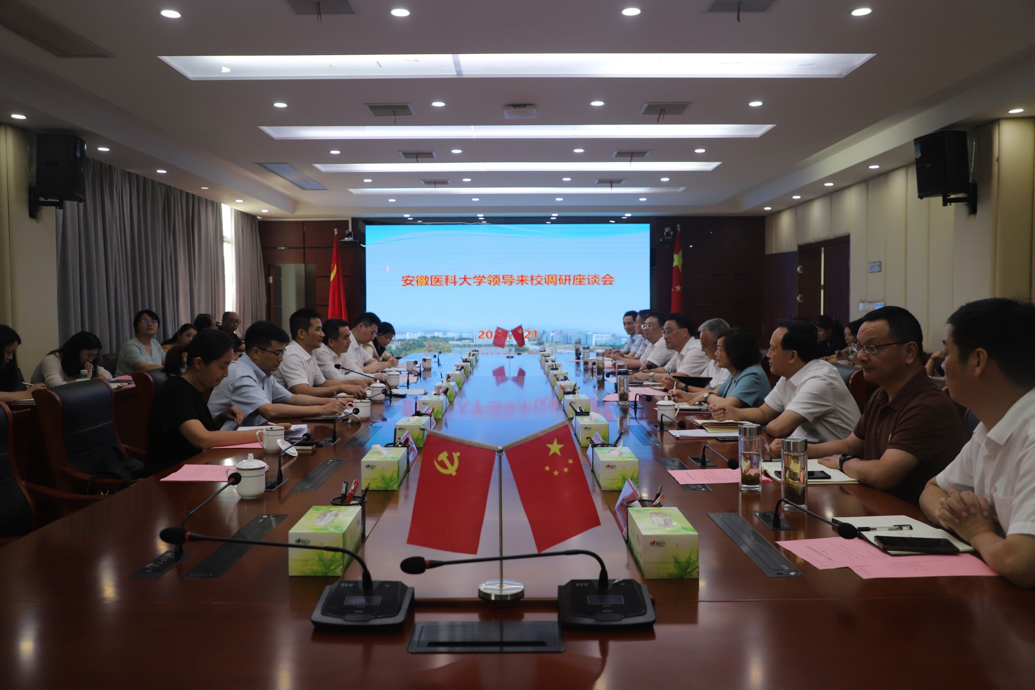 安庆市委教体工委书记、市教体局局长王良宜、市卫健委党组书记、主任张贤惜 ,安徽医科大学科技产业处,党政办公室、教务处、人事处以及宣传部等部门负责同志一同参加了调研和座谈。(撰文:黄骏;供图:徐源;审核:朱雯)