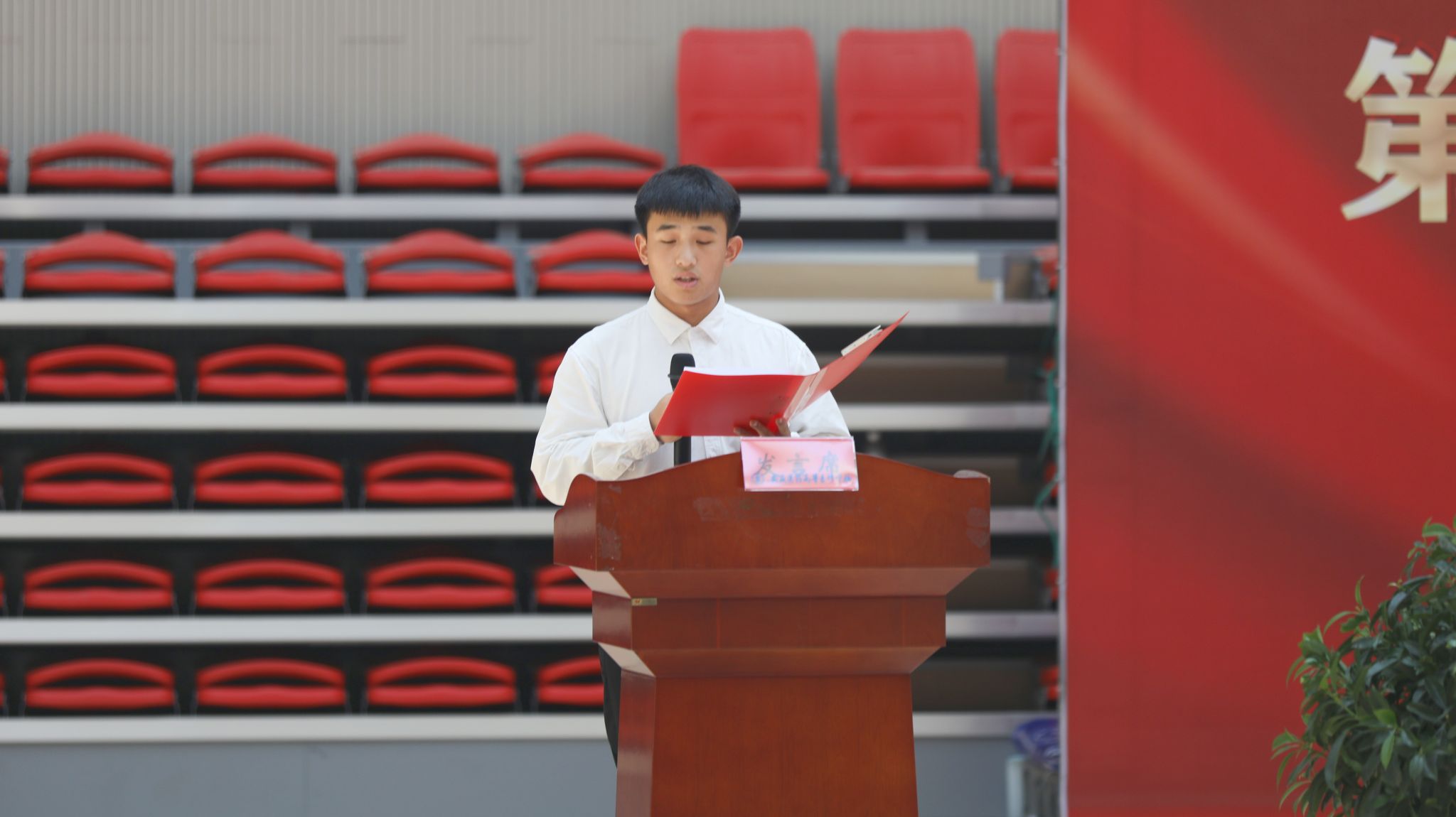学生代表谢铭杰在发言中表达了对老师由衷的敬意和诚挚的感谢,他表示将牢记习近平总书记的嘱托,以更加饱满的热情投入到学习和实践中去,不断提升自己的综合素质,努力成为德智体美劳全面发展的社会主义建设者和接班人,用实际行动感谢老师的恩情,用优异的成绩回报老师的辛勤付出。
