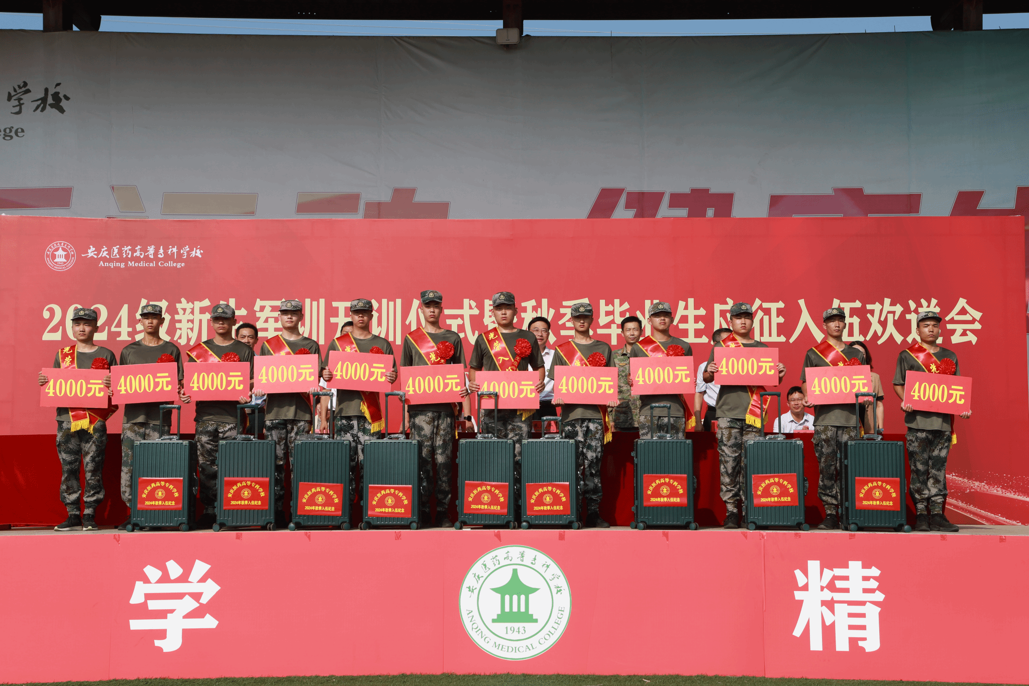 9月10日上午,我校举行2024级新生军训开训仪式暨秋季毕业生应征入伍欢送会。宜秀区人民武装部部长余洋受邀参加活动,校领导朱庆丰、张仕庆、陈燚、毛以成、陈琪、刘毅,团学部门负责同志、学管工作人员、军训教官、我校秋季入伍新兵、2024级新生辅导员和新生参加。开训仪式由校党委委员、党政办主任陈琪主持。