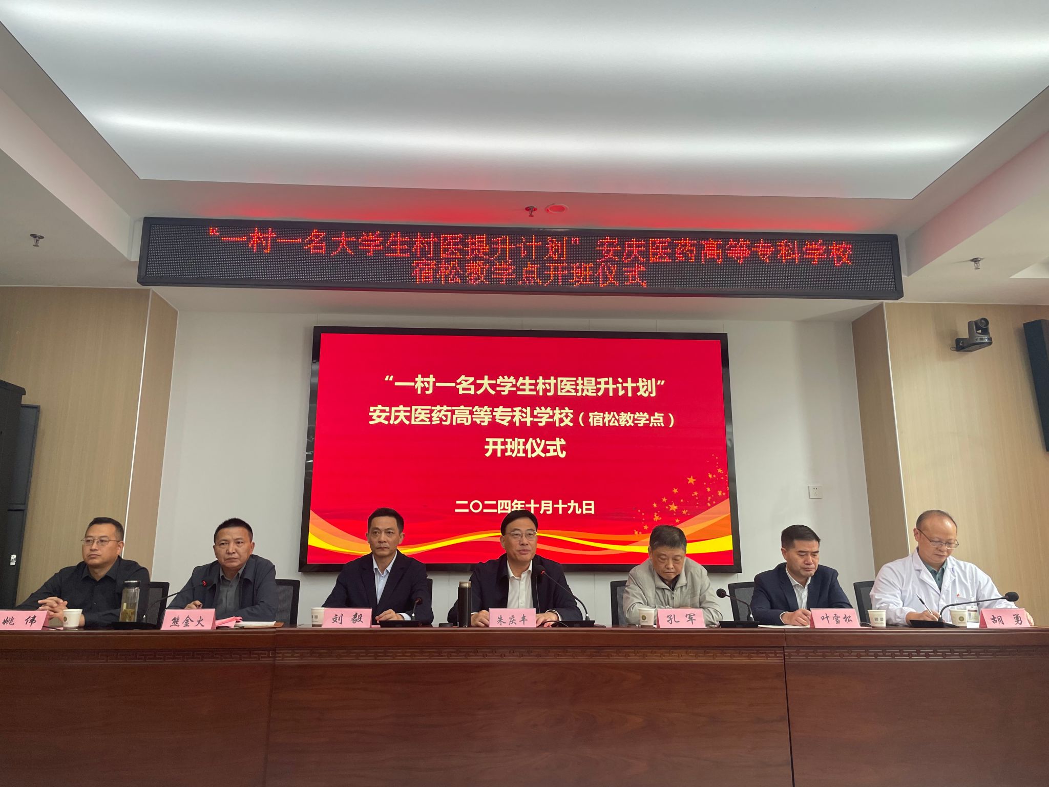 10月19日上午,“一村一名大学生村医提升计划”365beat版app宿松教学点开班仪式在宿松县中医院中会议室举行。校党委副书记、校长朱庆丰,校党委委员刘毅带领教务处、医学院相关工作人员参加了仪式。安庆市卫健委党组成员、办公室主任孔军,安庆市卫健委宣教科科长马聪以及各县卫健委和宿松县中医院、宿松县人民医院等领导及学生代表参加此次开班仪式。仪式由宿松县卫健委党组成员、红十字会常务副会长熊金火主持。