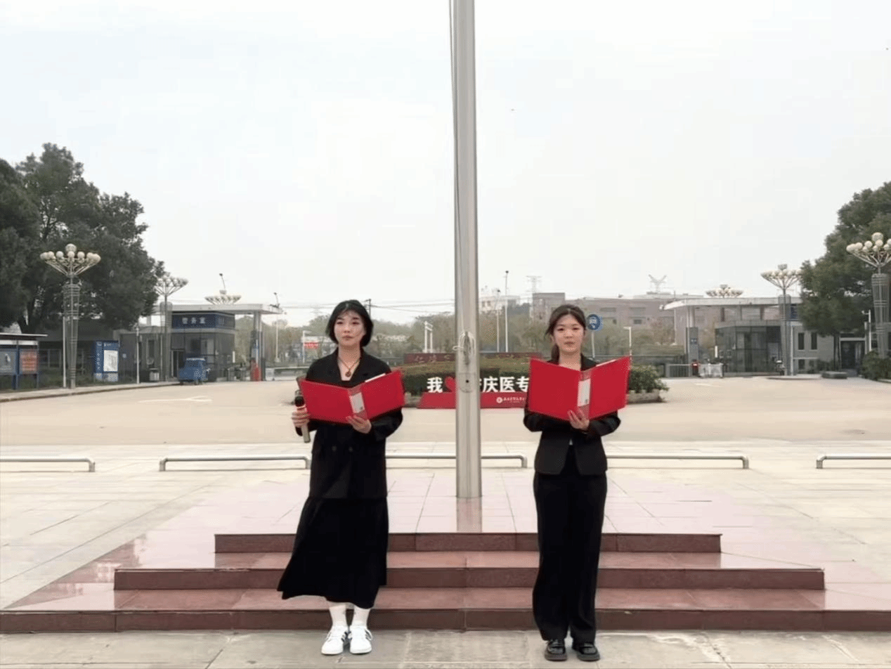 升旗仪式结束后,来自药学院、护理学院的两名同学作为代表,在国旗下诵读了“宪法晨读”内容。“中华人民共和国是工人阶级领导的、以工农联盟为基础的人民民主专政的社会主义国家......”她们的声音洪亮清晰,语调抑扬顿挫,引领着在场的每一个人深入感受宪法的庄严与权威,在国旗的光辉下,它提醒着每一位参与者,要时刻遵循宪法精神,依法行事,为构建和谐法治校园贡献力量。