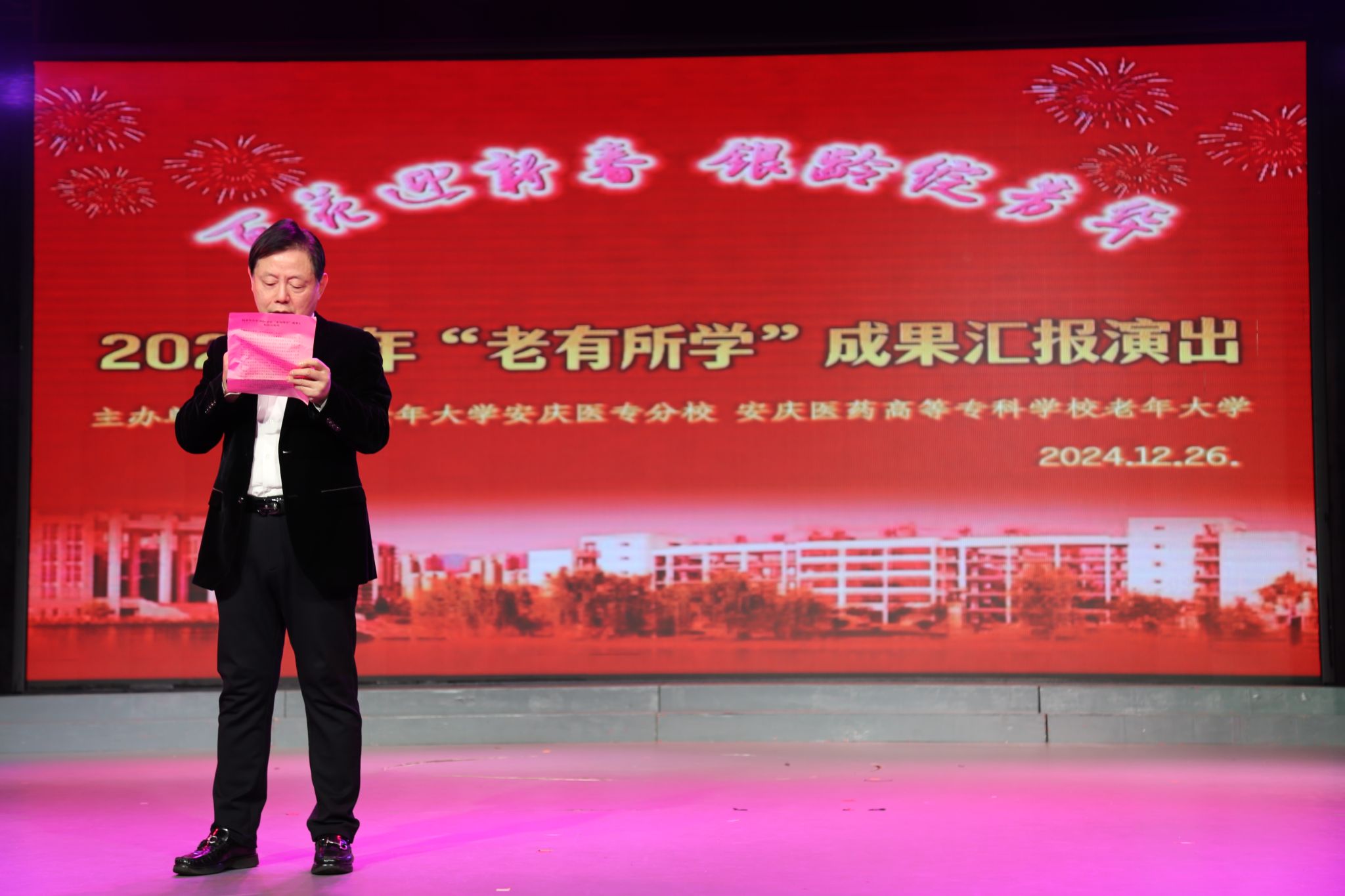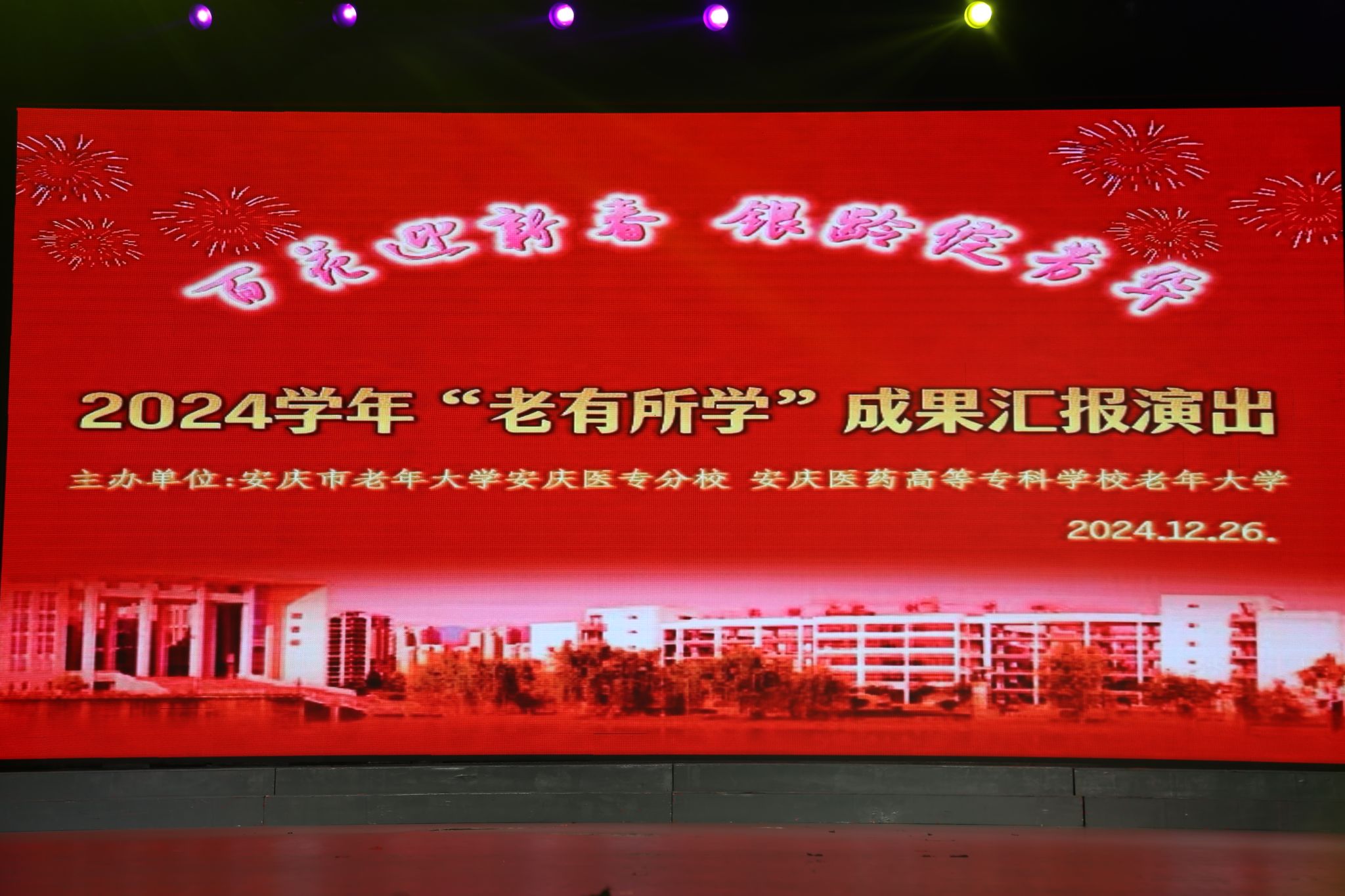 12月26日下午,365beat版app老年大学、安庆市老年大学安庆医专分校“百花迎新春,银龄绽芳华”主题的庆元旦暨2024年度“老有所学”成果汇报演出在一片欢声笑语中圆满落幕。此次活动不仅是老年学员们学习成果的精彩展示,更是学校积极响应市委、市政府“老有所学”行动号召,助力全市老年教育事业蓬勃发展的生动见证。