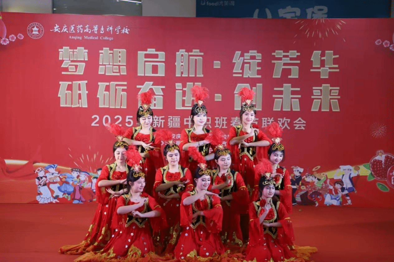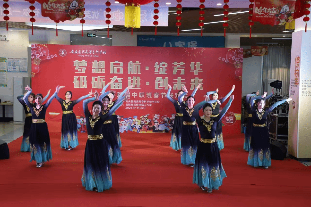 拉开了序幕,瞬间点燃了现场气氛。整场联欢会高潮迭起,笑声不断。现代舞《舞动青春》让全场洋溢着校园独有的生机勃勃与盎然活力;轻盈优美的古典舞《寄明月》完美展现了中国古典舞蹈的韵味和魅力;维吾尔族舞蹈《红玫瑰》以其优美的舞姿和深情的表达,赢得了观众的阵阵掌声;热情昂扬的哈萨克舞蹈《黑走马》展现了中职班学生的热情与活力;黄梅戏经典名选段串烧《女驸马》《打猪草》《天女散花》更是将现场气氛推向了高潮,赢得了阵阵掌声。特别是当同学们齐声高诵《赤子心·颂祖国》时,全场洋溢着浓厚的民族团结氛围,表达了对祖国大家庭的美好祝愿。