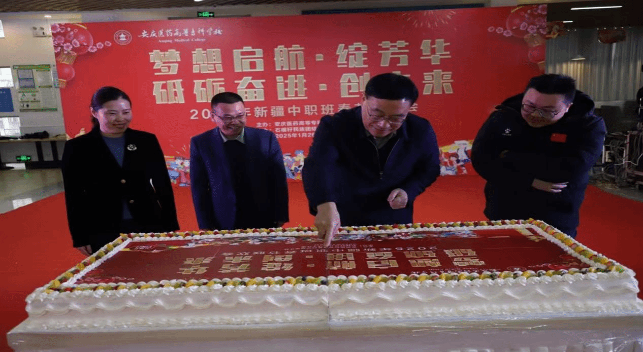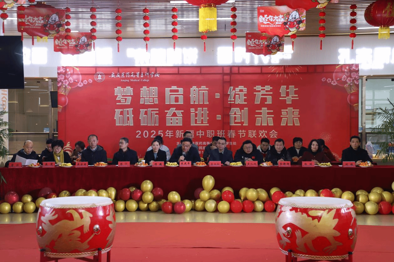 1月26日,我校隆重举行“梦想启航·绽芳华 砥砺奋进·创未来”2025年中职班新春联欢会。安庆市委统战部副部长、民族宗教事务局局长余红松,共青团安庆市委员会书记项薇,市委教育体育工委委员、市教育体育局副局长黄礼鹏,市教体局三级调研员吴宗亚等到校出席联欢会。校党委副书记、校长朱庆丰,党委副书记张仕庆,纪委书记陈燚,党委委员朱雯 、陈琪、刘毅、曹怀及相关部门、学院负责人与全体中职班师生欢聚一堂,共庆新春佳节。