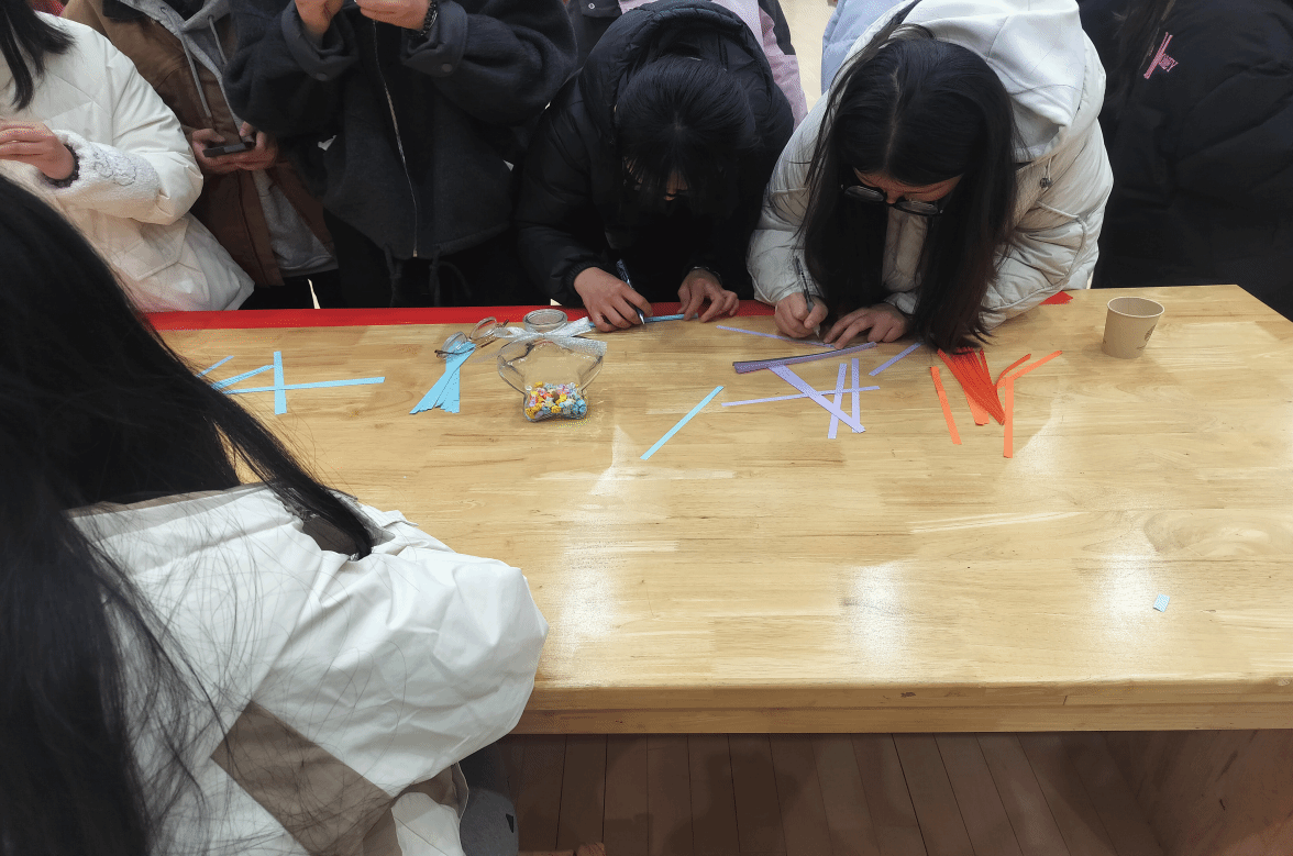 在护理学院的“折星星祈愿”摊位,同学们可以将内心的期望、祝福等情感倾注进一颗颗亲手折叠的星星里,将无形的情感化为有形,为心灵寻得寄托。这一过程不仅能有效缓解压力与焦虑,还悄然拉近了同学间的距离,增进了彼此的友情。