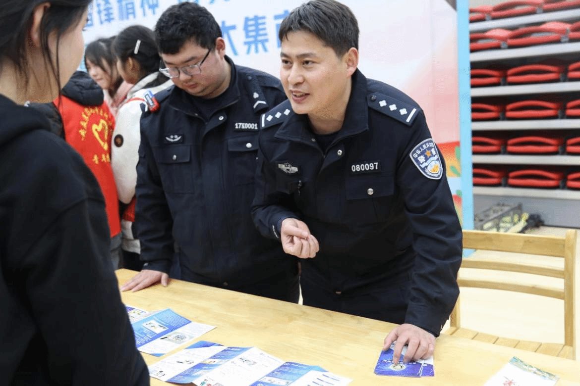 还有反诈摊位前,来自大龙山派出所的警务人员向同学们介绍各类新型诈骗案例,提醒提高同学们的防诈意识。“没有想到网络诈骗套路这么多,以后我一定提高警惕。”
