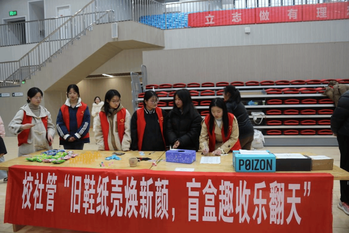 校学生会、社团服务管理中心开展“旧书归巢,爱心筑桥”、“旧鞋纸壳焕新颜,盲盒趣收乐翻天”摊位前,同学们用平时闲置不用的物品换取礼物盲盒,让学生在收获快乐的同时培养节约意识。