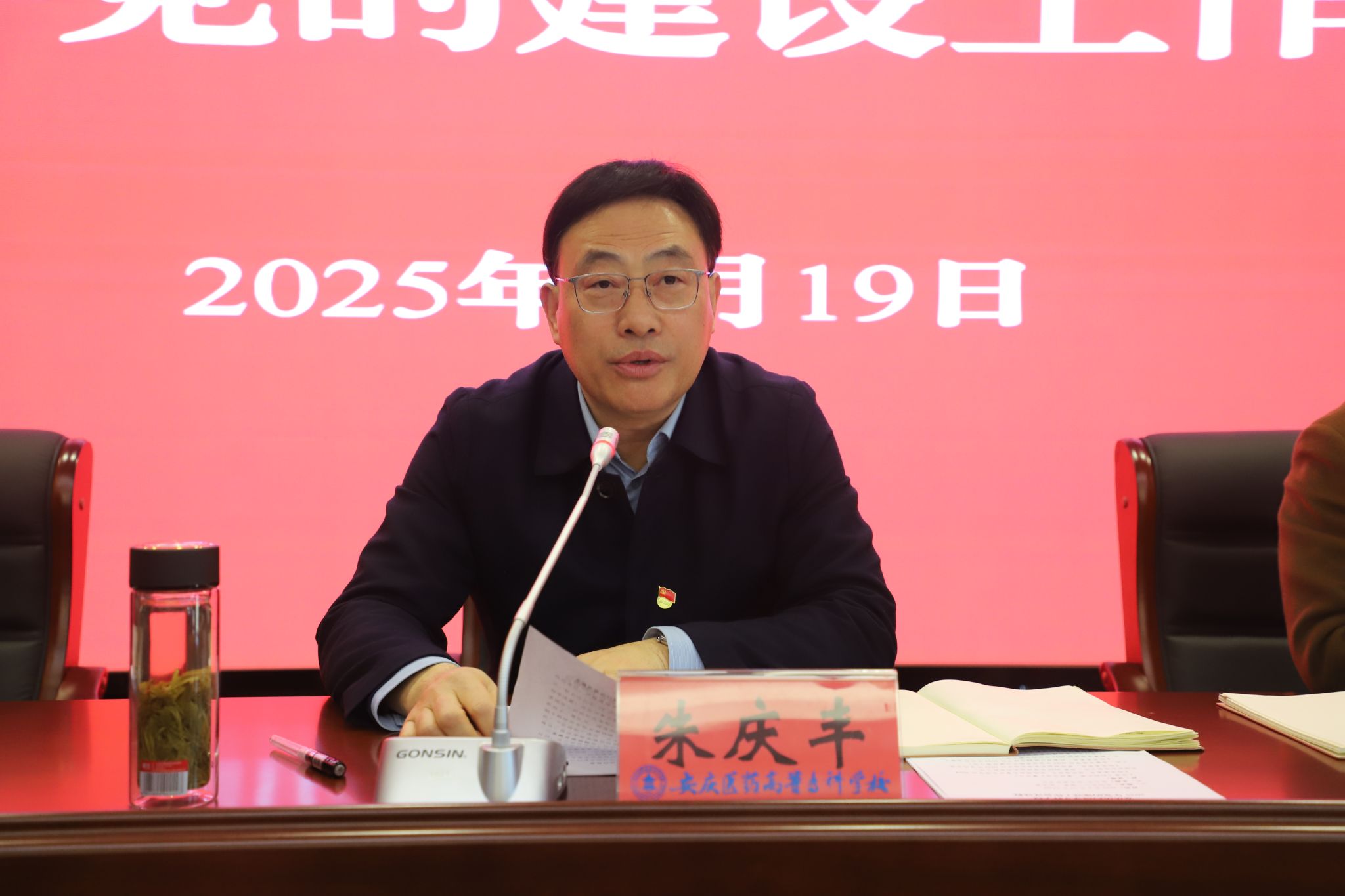 朱庆丰指出,过去的一年,学校在安庆市委、市政府的正确领导下,在上级教育主管部门和相关单位的大力支持下,聚焦申建应用型普通医学本科院校目标,围绕立德树人根本任务,立足“三个突破”和“五个校园”建设,抢抓机遇,奋勇争先,全面夯基础、强内涵、提质量、创特色,高质量发展迈出坚实步伐,实现了党的建设和业务发展双融合、同进步,党的全面领导更加有力,党建引领作用更加彰显,学校发展态势更加向好。