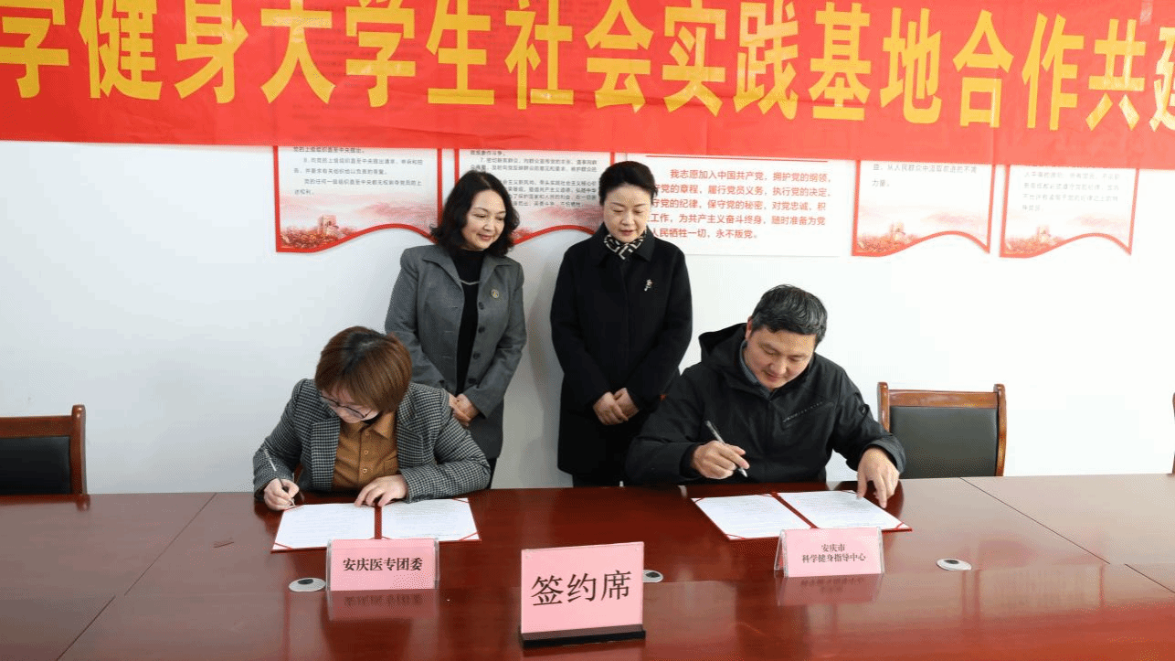 仪式上,双方共同为“大学生社会实践基地”揭牌并签订合作协议。双方一致表示,未来将以基地为平台,共同培养一批专业的科学健身指导志愿者队伍,常态化开展相关志愿服务活动,惠及安庆市民群众,助力构建更高水平的全民健身公共服务体系,为建设健康安庆、幸福城市增添新活力。活动开始前,参会人员还共同参观安庆市科学健身指导中心,重点了解中心的设施功能以及服务项目。