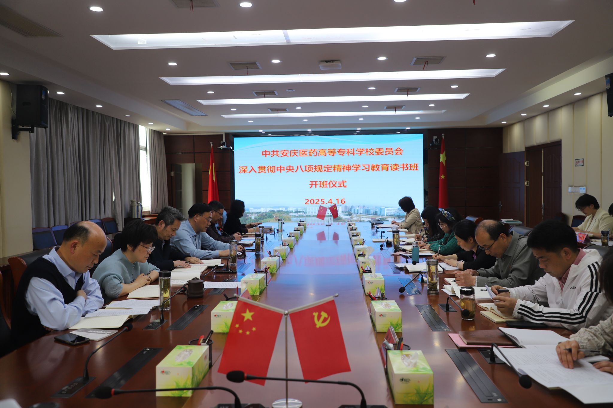 4月16至17日,校党委举办深入贯彻中央八项规定精神学习教育读书班。校党委副书记、校长朱庆丰主持开班式和集中交流研讨暨党委理论学习中心组学习会议并讲话,校领导班子成员,附院、学院、处室(中心)负责人参加会议。