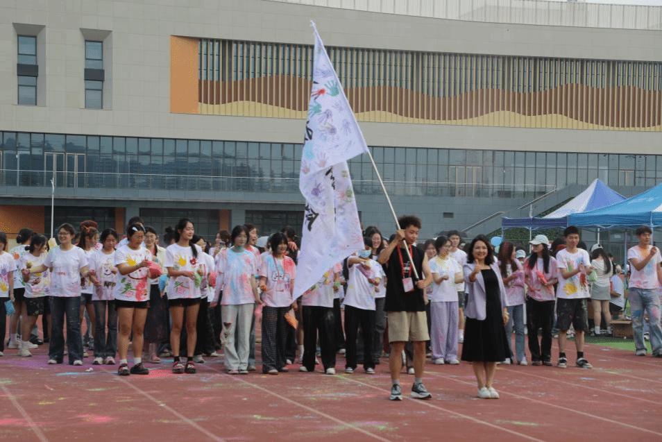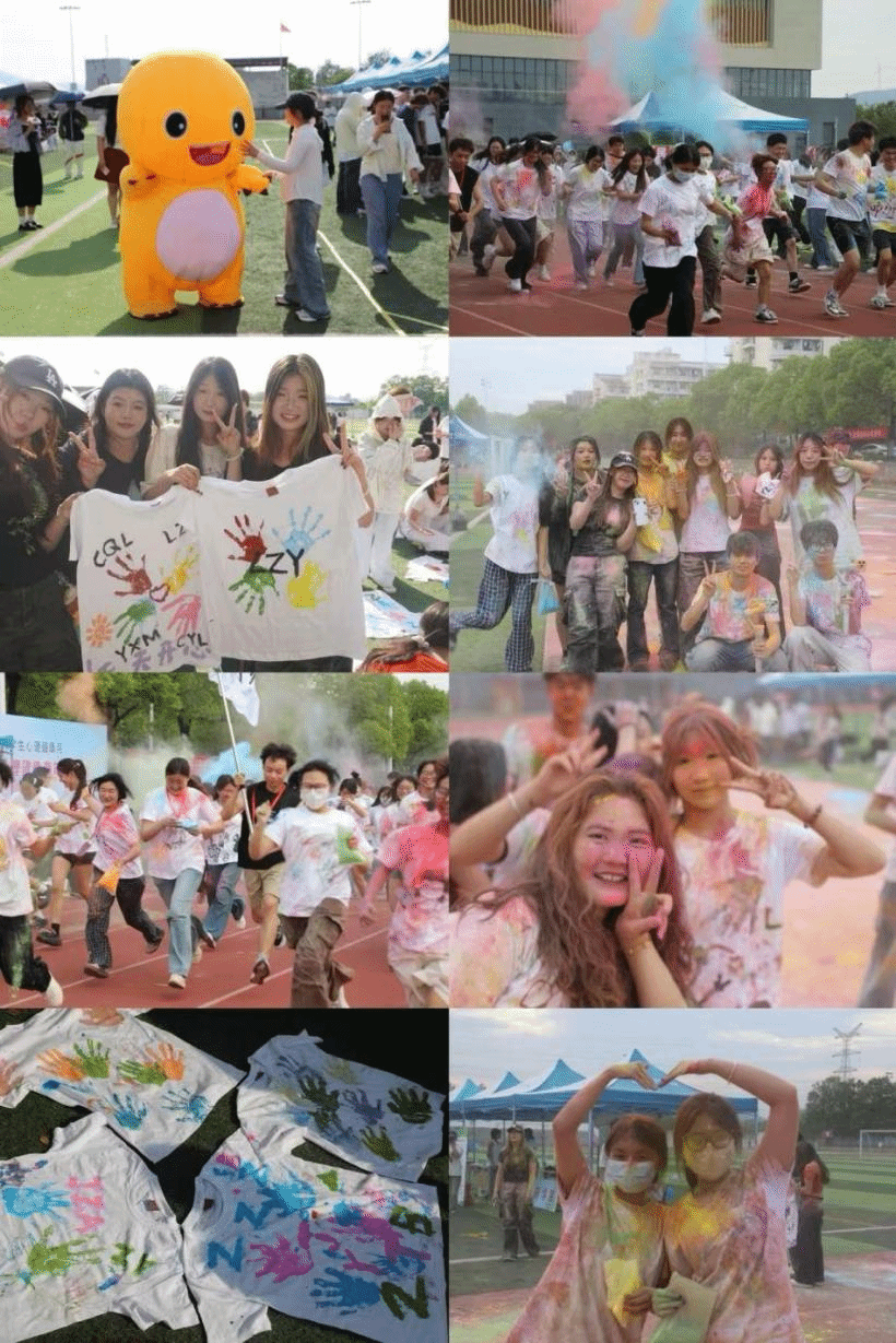 此外,同学们还可以在“一个愿望球”上写下自己的期待和心愿,并与可爱的小奶龙合照拥抱;在最后压轴的彩虹跑中,同学们身着自己DIY的彩绘T恤,在彩色粉末的飞扬中肆意奔跑,将现场气氛推向高潮。