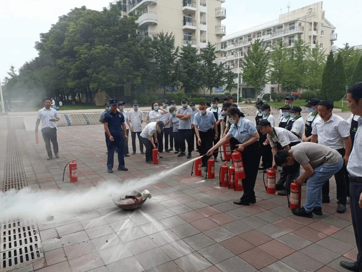 在现场演练环节,消防队员分别示范灭火器“提、拔、握、压”四步操作法,以及消火栓“一甩、二接、拧到底”操作方法,然后让师生分组体验干粉灭火器和消火栓扑灭油盆火,掌握“上风站位、瞄准火源根部扫射”等技巧。