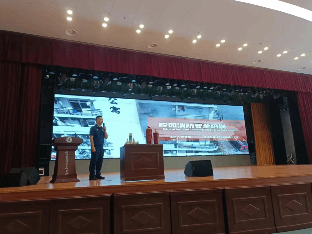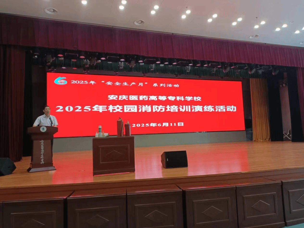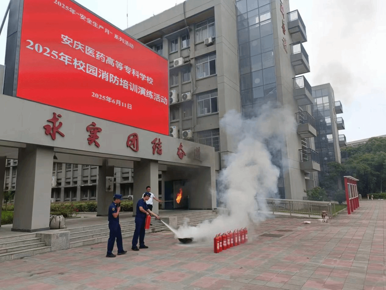 为落实我校消防安全主体责任,切实提高广大学生、教职员工消防安全意识和自防自救能力,坚决防范和遏制火灾事故发生,2025年6月11日下午我校联合安徽省安庆市宜秀区消防救援大队开展校园消防培训演练活动,通过“理论+实操”全面提升师生消防安全应急处置能力。副校长毛以成、保卫处全体工作人员、在校学生代表、教职工代表、后勤服务人员代表参与活动。