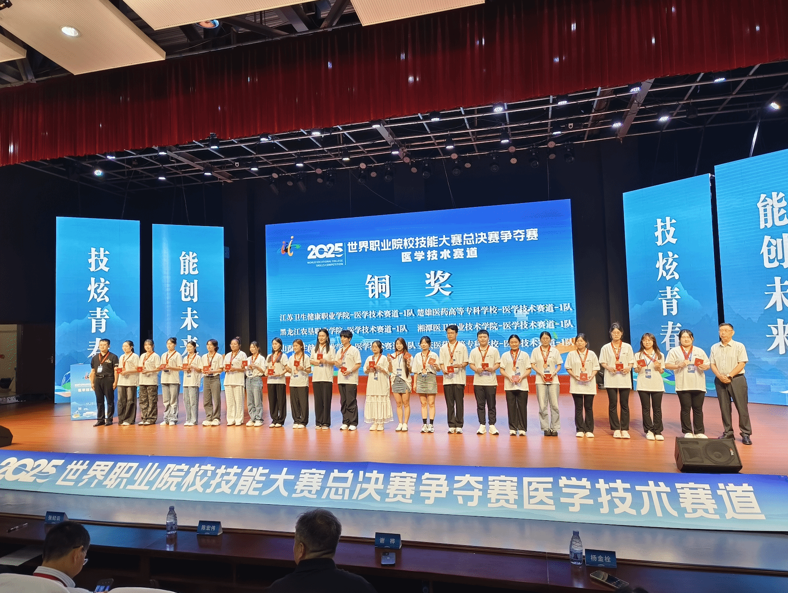 2025年8月18日至22日,由教育部、国家发展改革委、科技部等33部门主办的2025年世界职业院校技能大赛总决赛医学技术赛道争夺赛(高职组)在河南信阳成功举办。我校医学院代表队在总决赛中荣获铜奖。