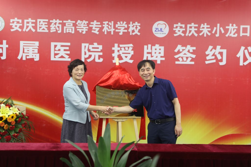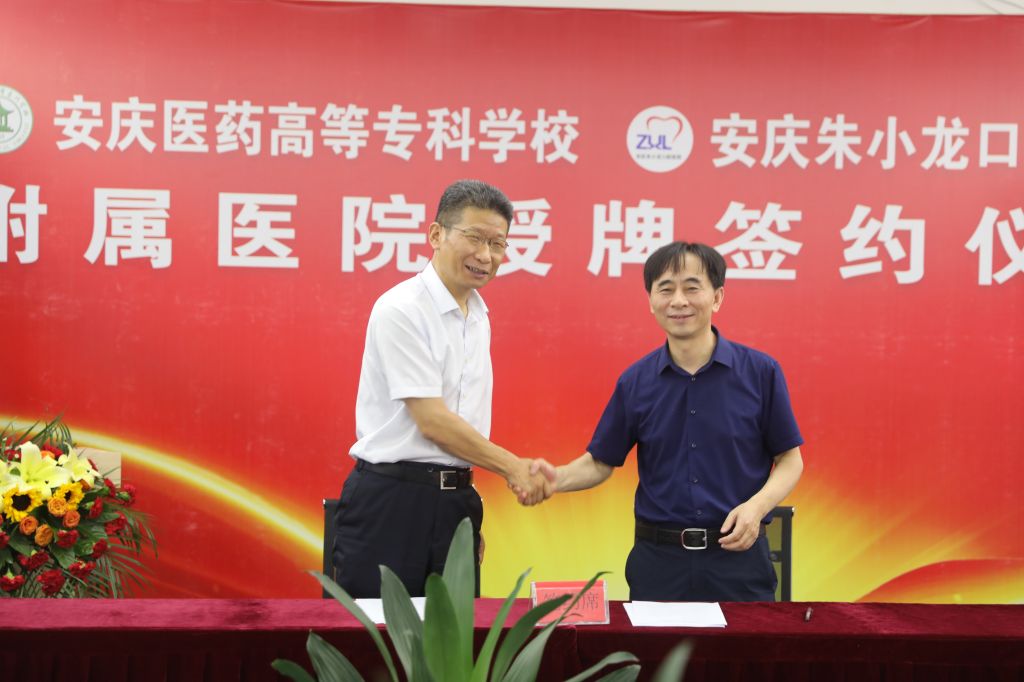 校院融合促发展,携手共建创未来!为深化医教研协同创新,探索培养高素质口腔医学人才,7月29日上午,安庆朱小龙口腔医院成为我校非直属附属医院揭牌签约仪式在医院东院区举行。校党委书记叶林霞,校党委副书记、校长姚文兵,副校长朱庆丰,校党委委员朱雯,安庆朱小龙口腔医院院长朱小龙以及学校相关人员和医院员工代表参加揭牌仪式。