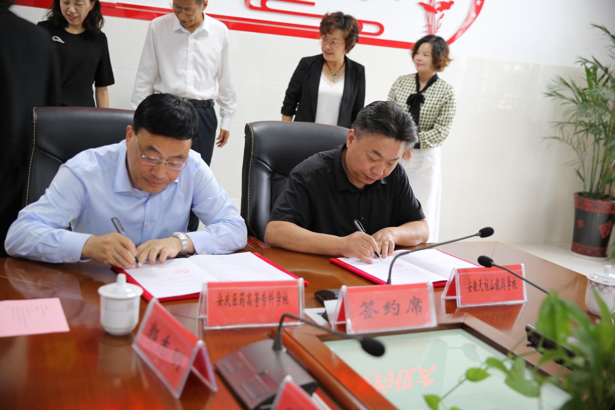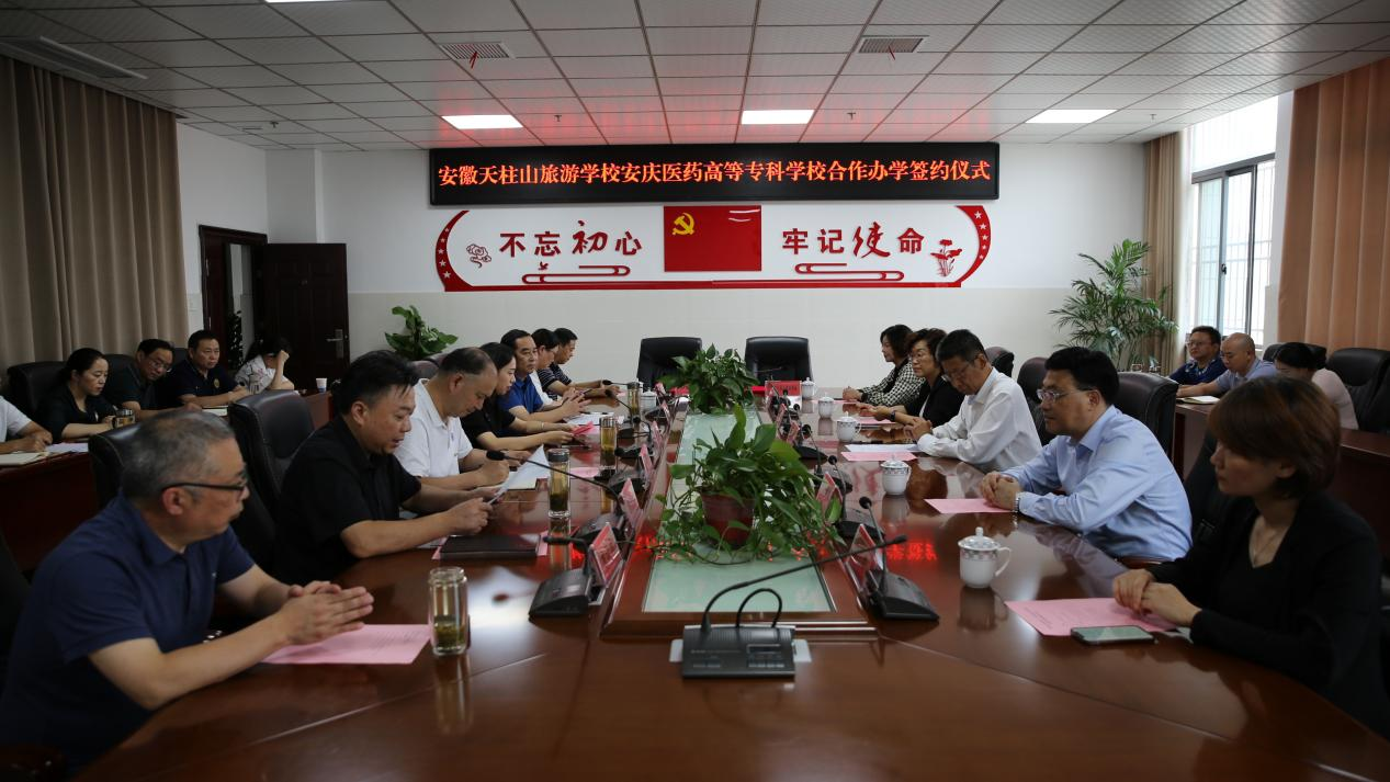 9月28日下午,我校与安徽天柱山旅游学校的合作签约仪式在安徽天柱山旅游学校举行。校长姚文兵、副校长朱庆丰、党委委员朱雯等校领导带领教务处、医学院负责人参加签约仪式。仪式由潜山市教育局党委书记石敬忠主持。