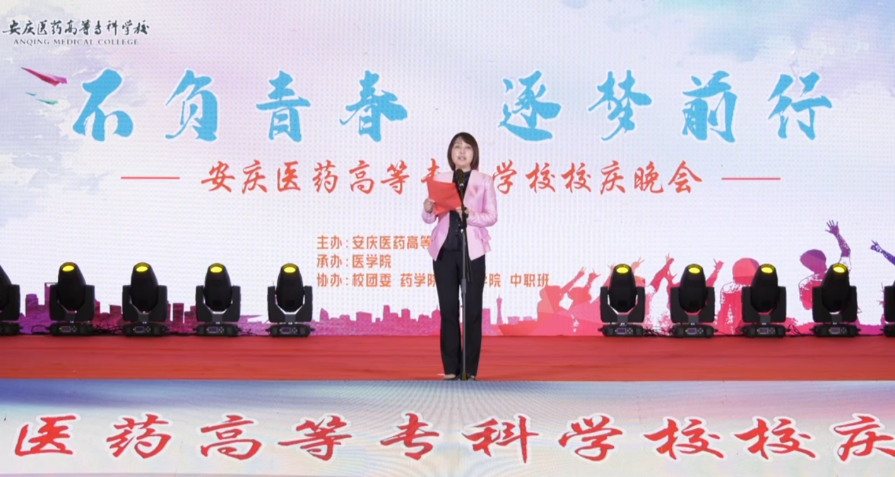 晚会上,校党委委员陈琪代表学校致辞,她向为医专发展做出贡献的各位校友和全体师生致以崇高的敬意,向关心和支持医专的社会各界人士表示诚挚的感谢,希望同学们珍惜青春年华,胸怀远大理想,自立自强,勤奋学习,不负青春,逐梦前行,激励老师们当好青年学生健康成长的引路人和知心人,培养德智体美劳全面发展的社会主义建设者和接班人。