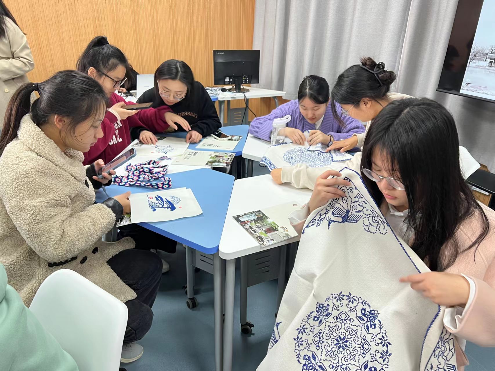 活动中,全体师生还观看了挑花宣传片、欣赏了挑花作品。王世福针对挑花的发展与传承提出了一个课题,引发在场师生的积极思考与热烈讨论,大家各抒己见,发表对传统文化如何传承与创新的看法。挑花社社长江佳佳说,“作为新时代青年,我们要以继承和发展中华民族优秀文化为己任,坚定文化自信。”