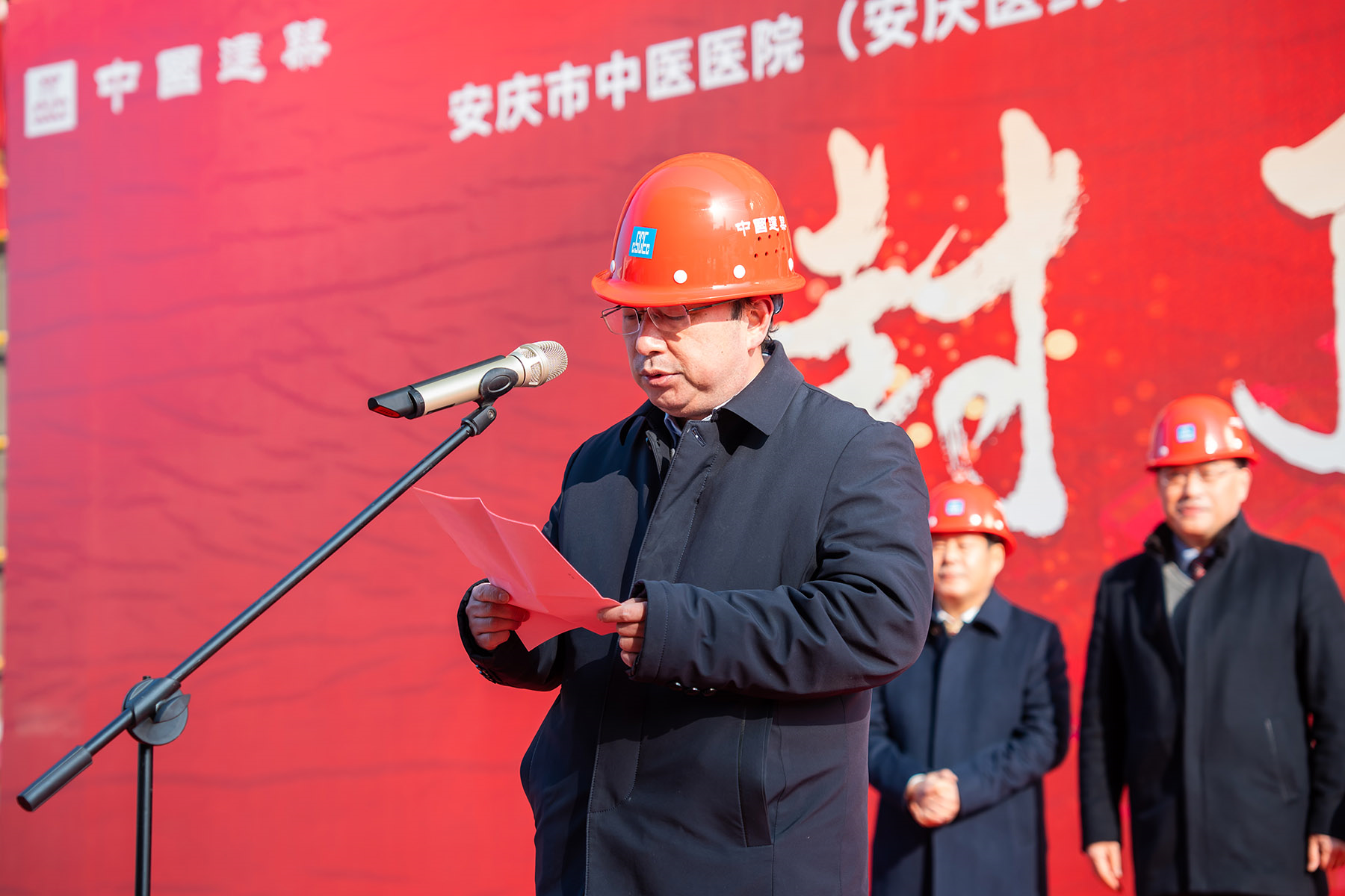 学校党委书记叶林霞、党委委员、副校长朱庆丰、安庆市卫生健康委员会党组成员、安庆市老龄委员会工作处主任王征兵、安庆市重点工程建设处党组成员、副主任王一平出席活动,共同见证项目封顶的重要时刻。安庆市中医医院领导班子、中建七局安徽有限公司负责同志、安庆市建筑管理处、安庆市重点工程建设处、项目施工单位、监理单位、设计单位工作人员代表,以及安庆市中医医院广大干部职工参加活动。