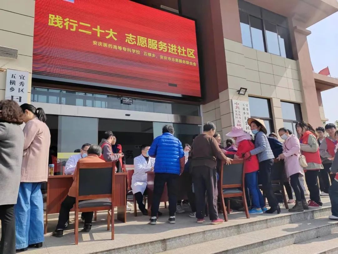 校团委积极响应校党委号召,组织团员青年开展为期一个月的“传承雷锋精神,勇担青春使命,引领时代风尚”主题实践教育活动。3月5日上午,活动启动仪式在五横乡曰公社区举行,校党委委员、组织部部长、统战部部长朱三九、校党委委员陈琪,五横乡党委副书记陈长宁、组织统战委员许慧琼,安庆市志愿服务联合会副会长汪全报,学生处、各学院相关负责人及师生志愿者40余人参加。启动仪式后,来自附属安庆市中医院和各学院师生志愿者开展了社区义诊、应急救护及传染病防治知识科普等社区志愿服务项目。