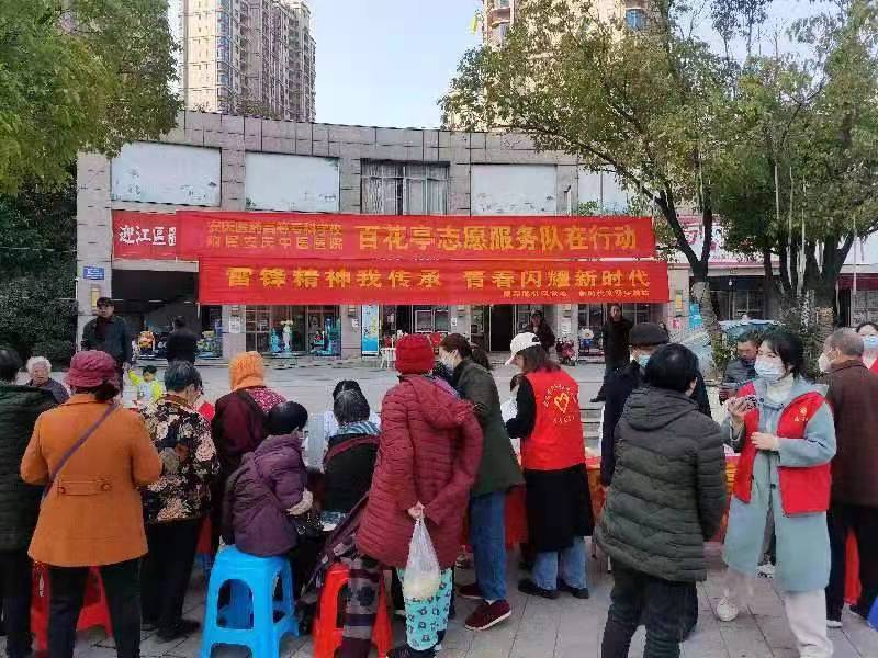 校百花亭志愿服务队深入到滨江街道秦潭湖社区开展“继续深化‘一改两为’ 全员争当雷锋标兵”学雷锋志愿服务活动。活动现场,由我校医药专业教师和附院专业医生组成的志愿服务队员们免费帮助附近居民量血压,开展健康咨询,普及慢性病防治知识,宣传健康生活习惯。队员们还围绕春季流行性感冒、水痘、手足口病、诺如病毒等常见传染病的传播途径、主要症状、易感人群以及预防措施等知识,向社区群众进行了全面细致的讲解,并发放预防春季常见传染病的宣传资料。