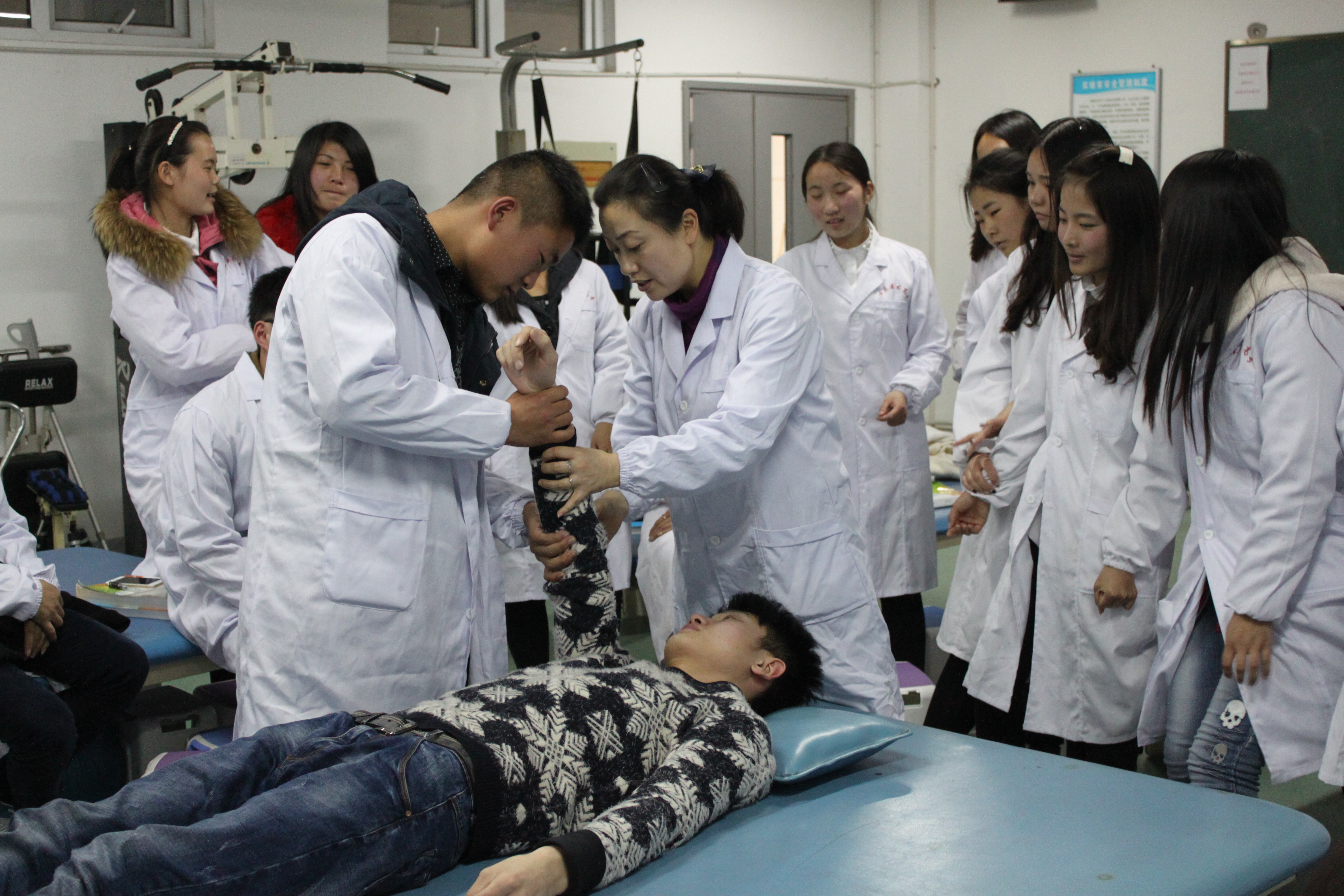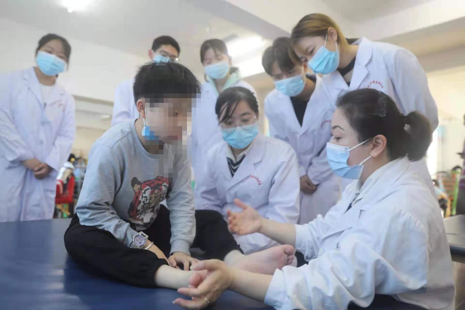 从2010年起,两位小患者每个周末都会来到365beat版app康复治疗技术实训中心。吴江玲带领学生志愿者运用专业知识和专业设备对两位小患者进行细致的康复治疗。经过大家的共同努力,两位小患者的运动功能和日常生活活动能力都得到了很大的提高,飞飞实现短时间独立步行,淘淘的左手能够拿一些比较轻的物品。