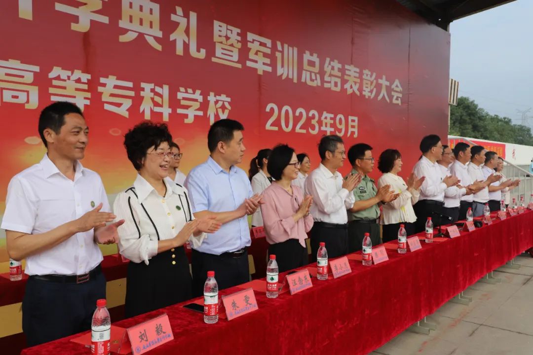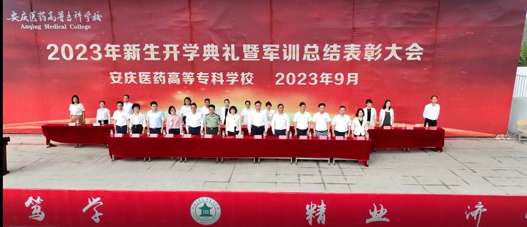 桃李无言迎秋露,丹桂飘香满绿园。新的学年,承载新的梦想;新的学期,开启新的征程。9月28日,我校在田径运动场隆重举行2023级新生开学典礼暨军训总结表彰大会。校党委书记叶林霞、校长朱庆丰、校党委副书记张仕庆、纪委书记陈燚、副校长毛以成、党委委员朱三九、朱雯、陈琪、刘毅出席典礼。大会邀请了安庆市宜秀区人民武装部部长刘巨华、安庆第一人民医院副院长李小月、海军安庆医院党委副书记华双一、南京鼓楼医院集团安庆市石化医院副院长汪念东等嘉宾出席。各二级学院和相关职能处室负责人、2023级辅导员及全体新生参加典礼,大会由校党委副书记张仕庆主持。