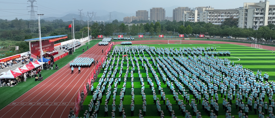 伴随着雄壮的国歌声,五星红旗缓缓升起,叶林霞宣布2023级新生军训会操表演开始。