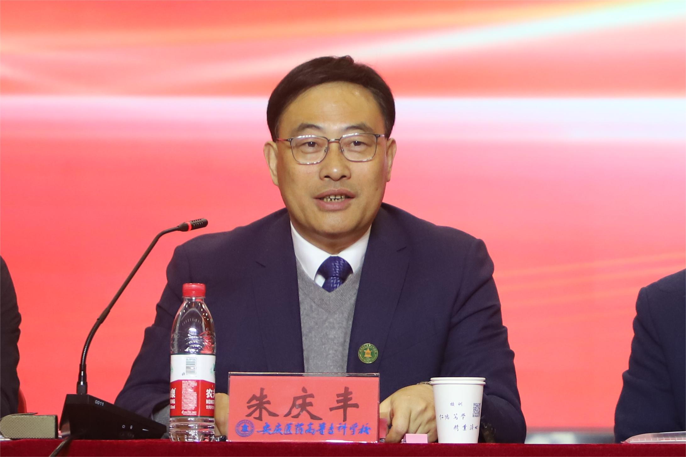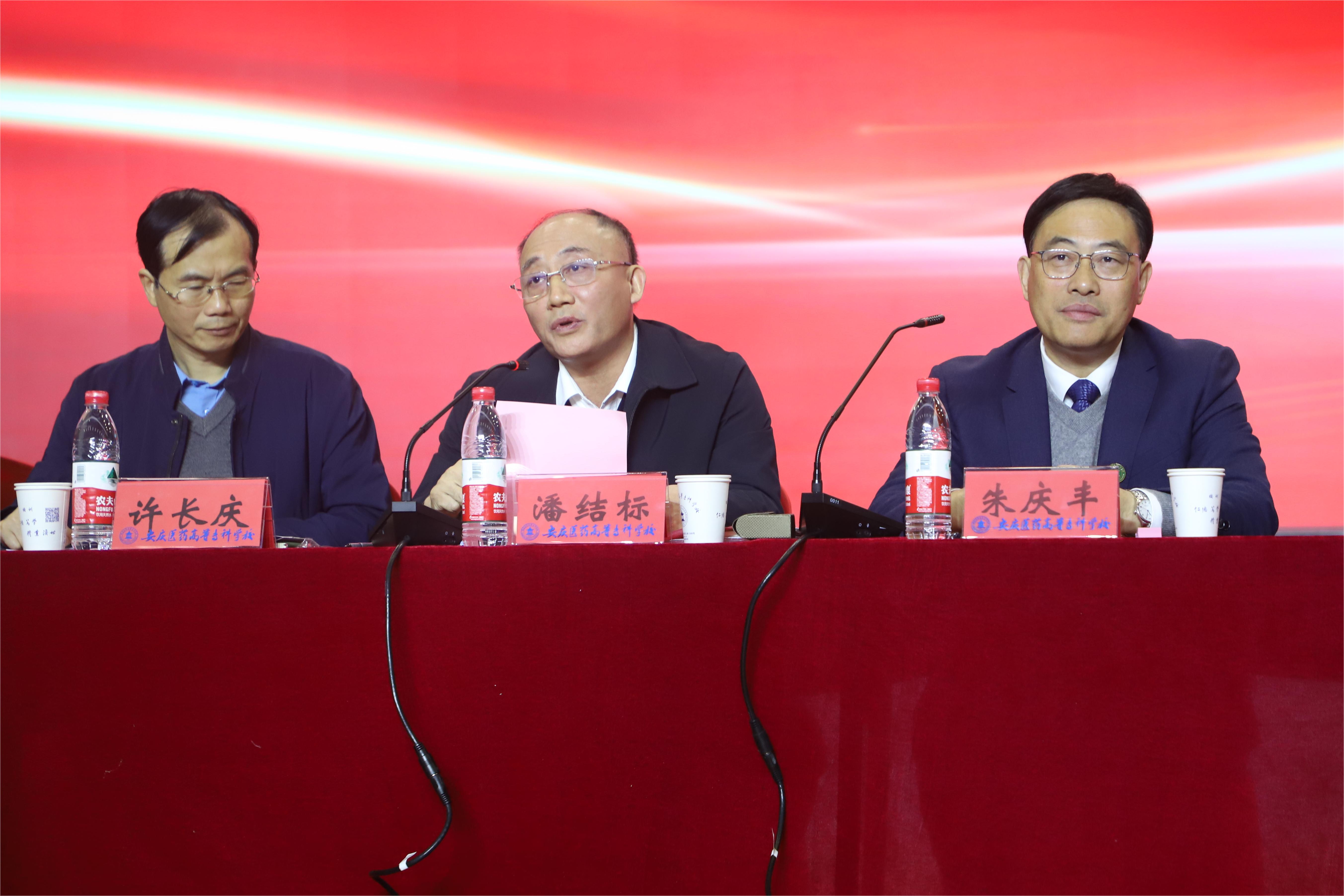 潘结标代表安庆市卫生健康委,向学校开办村医高职学历提升班表示热烈祝贺和衷心感谢,希望全体新生在接下来三年里能珍惜学习的机会认真学习,专心致志抓好学业,把专业知识学深、学透,把技术技能学好、学牢,着力提升“小病善治、大病善识、重病善转、慢病善管”能力,以优良的学风、出色的成绩、良好的形象报答党和政府,将学习成果转化为服务基层群众健康的新成效,大力提升群众的获得感、幸福感、满足感。