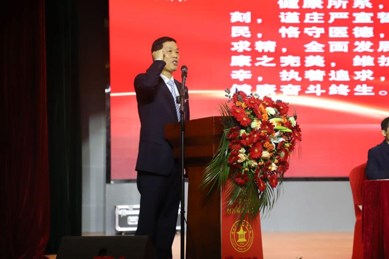 全体新生在主任医师、副校长毛以成的带领下重温医学生誓言,进一步坚定了医者的从业初心和救死扶伤的使命。