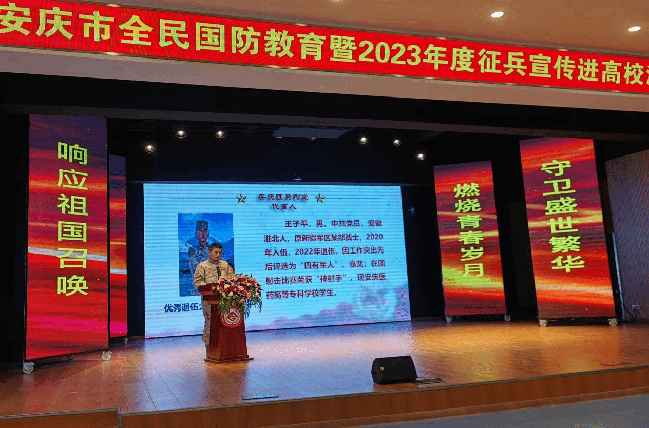 未雨绸缪谋征兵,精益求精提质效。2024年征兵工作启动以来,学校不断加大征兵宣传力度,开展各种不同形式的活动,吸引同学参加。每天在学校教学楼前大屏幕滚动播放入伍宣传片,联合校广播站安排一周两次播放部队歌曲。组织多名学生参加宜秀区2024年征兵启动仪式;谋划在校退役复学学生举行迎春武装越野长跑,扩大影响力,树立好形象。
