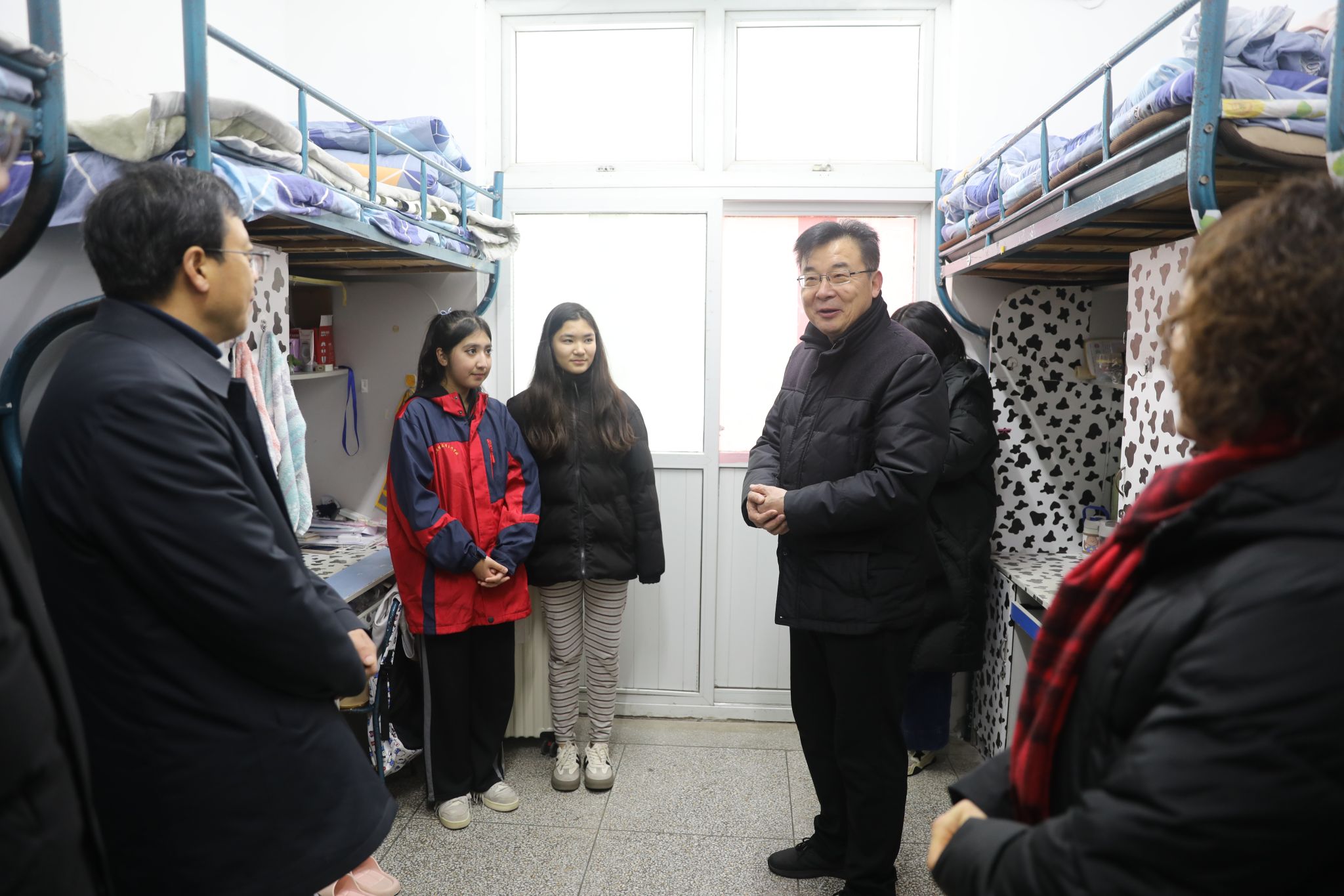 省厅领导还实地检查学校宿舍、查看校园安全,嘱咐学校要以铸牢中华民族共同体意识为主线,用心用情做好新疆班教育教学和服务工作,为党育人、为国育才,让民族团结之花常开长盛。