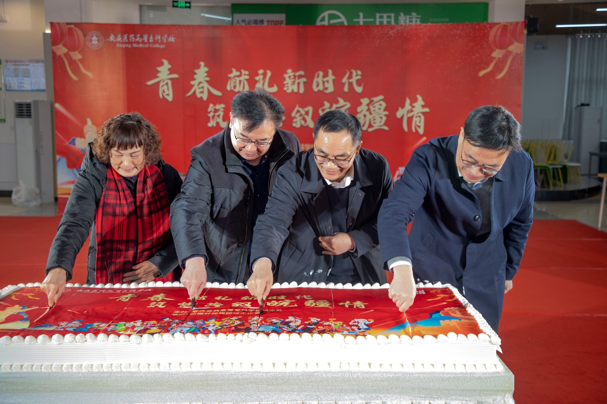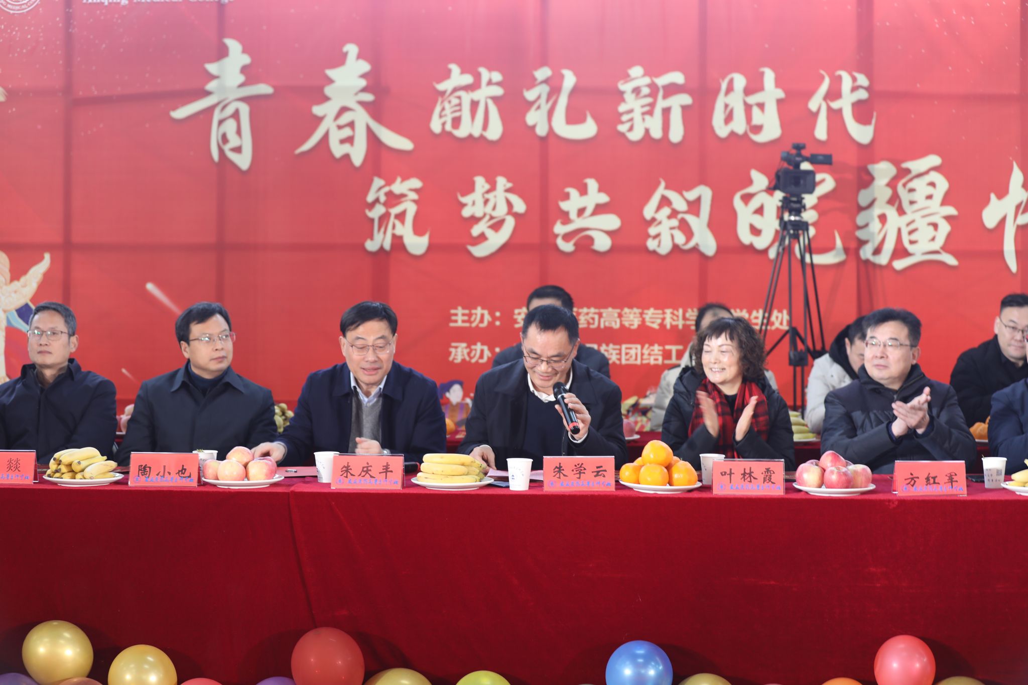 2024年2月6日,我校隆重举行“青春献礼新时代 筑梦共叙皖疆情”2024年新疆中职班新春联欢会。安庆市人民政府副秘书长朱学云,安庆市委统战部副部长、民族宗教事务局局长陶小也,安徽省教育厅思政处副处长方红军,安庆市教体局四级调研员吴宗亚、安庆市宜秀公安局政委李晓五等到校出席联欢会。安庆市人大常委会副主任叶林霞,党委副书记、校长朱庆丰,党委副书记张仕庆、党委委员、纪委书记陈燚、党委委员朱三九、陈琪、刘毅及相关部门、学院负责人与全体中职班师生欢聚一堂,共庆新春佳节。