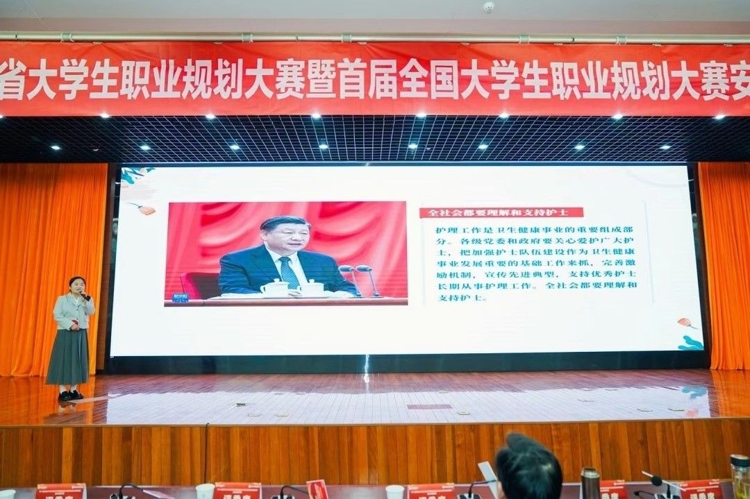 自此次大赛开展以来,学校高度重视,校领导亲自部署,努力营造良好大赛氛围,广泛动员、扩大学生参赛覆盖面,发挥师生合力、提升参赛质量。就业与创新创业教研室教师全程参与指导,发挥学校学科优势,针对决赛选手的主题立意、比赛材料、现场展示提供专门指导,帮助参赛选手梳理自我认知、职业目标、职业行动和未来成长规划,有效提高了全体决赛选手的职业规划能力和参赛水平。