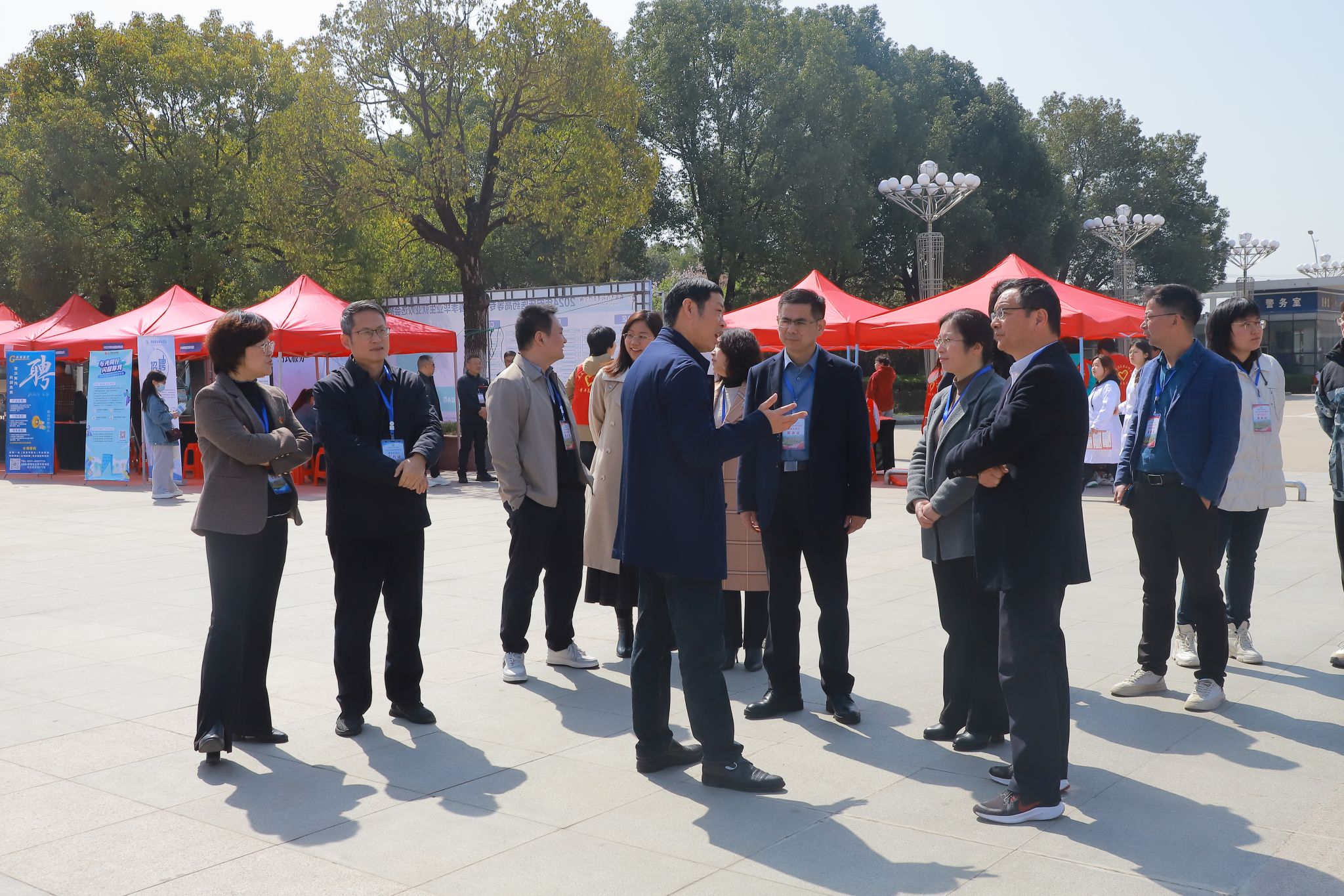 安徽省教育厅大中专毕业生就业指导中心市场信息部胡博文来校指导工作,市人社局副局长方敏、市卫健委副主任范兰芳,市妇联副主席杭向阳与我校校领导张仕庆、陈燚、毛以成、朱雯、陈琪等共同深入双选会现场,与用人单位亲切交流,询问毕业生求职准备情况和就业意向,并勉励现场应聘毕业生积极走向社会,勇敢接受挑战,努力在新时代成就有梦想、有奋斗、有奉献的精彩人生。