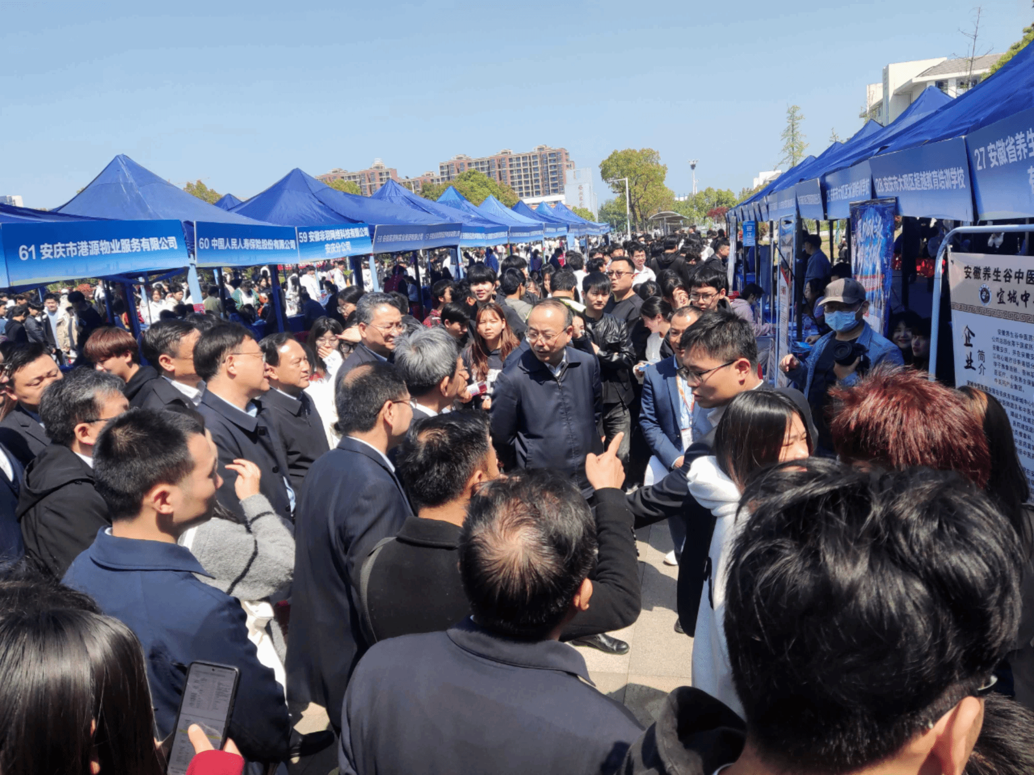 4月9日上午,“市委书记进高校”宣讲活动暨校园专场招聘会在安庆职业技术学院举行。我校党委副书记、校长朱庆丰,学生处负责同志和50余名学生代表来到现场参加活动。同时,在我校学术报告厅设立分会场,全校共有300余名师生在分会场收看现场直播,其余同学通过线上直播的形式进行同步收看。