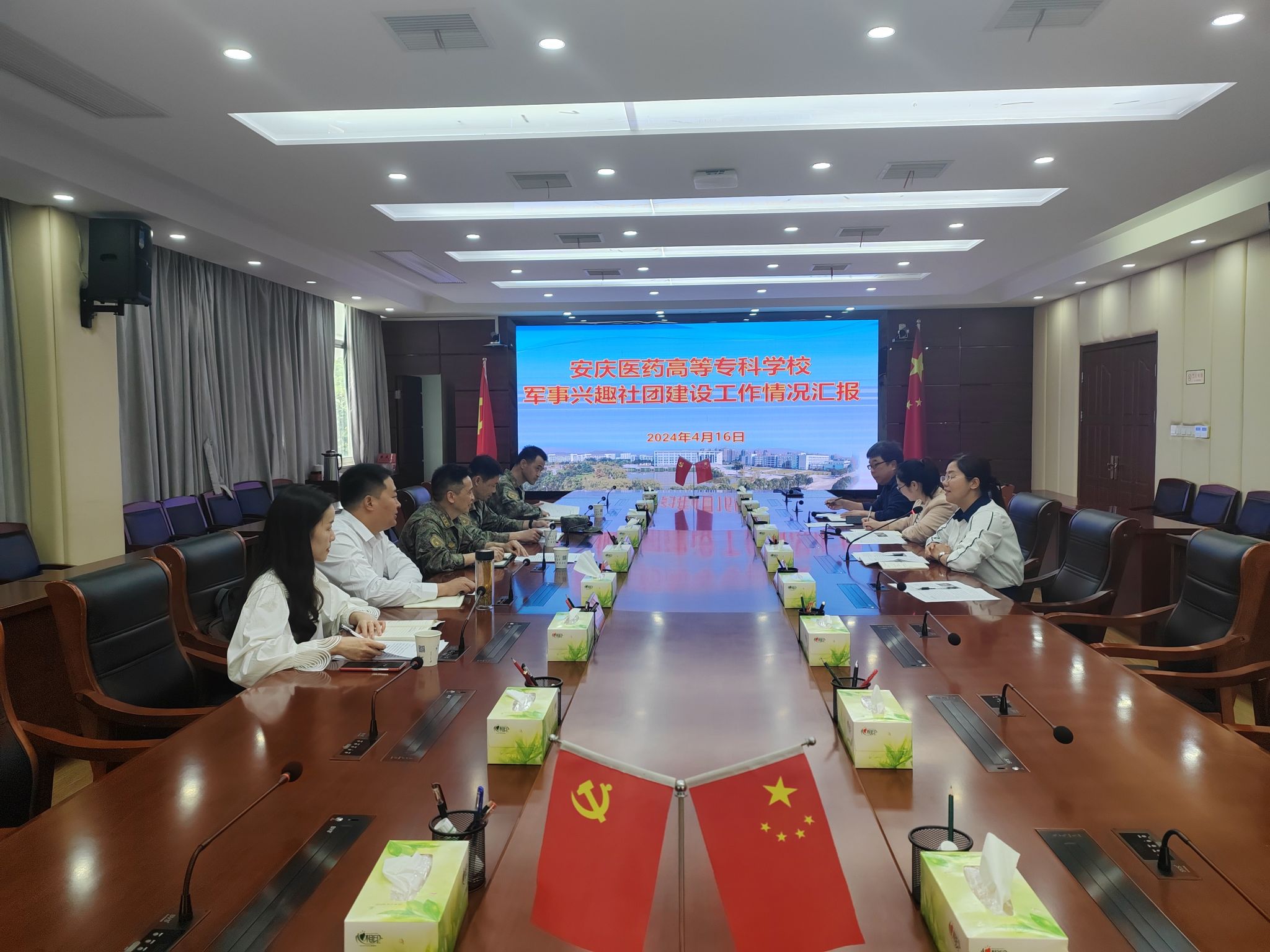 4月16日,安庆市军分区征兵办联合安庆市教体局、团市委、宜秀区人武部等一行五人来校调研军事兴趣类社团建设工作,校党委副书记、校长朱庆丰,学生处和团委有关负责同志陪同,双方就军事兴趣类社团建设和征兵工作等进行深入交流座谈。