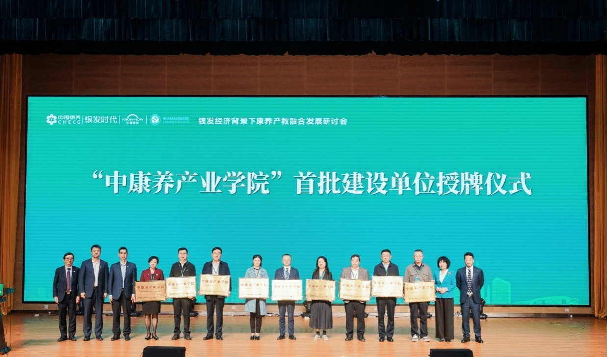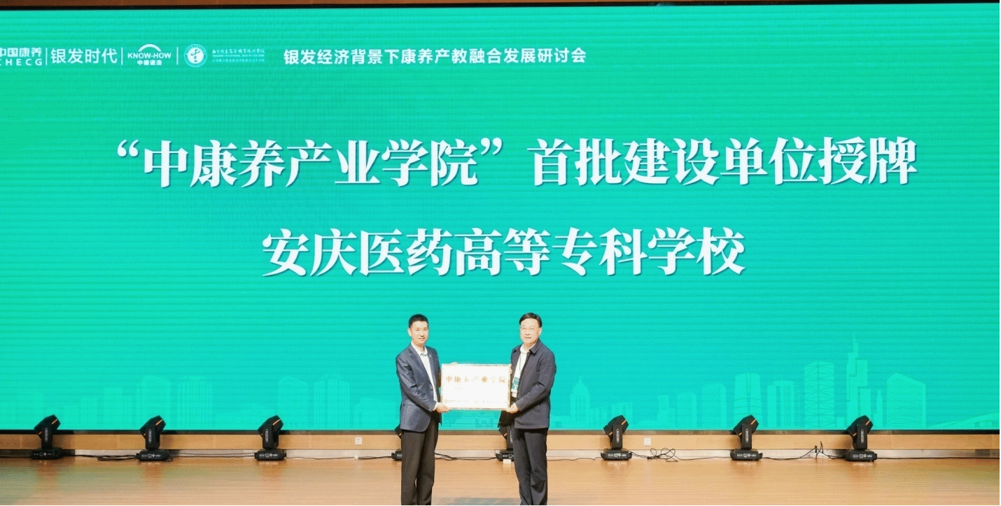 会议同时举行了“中康养产业学院”首批建设单位授牌仪式,我校作为“中康养产业学院”9家首批建设单位之一,朱庆丰上台接牌。