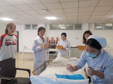 决赛前,护理学院安排老师对选手进行集中指导,以达到培训同质化,在比赛现场,选手们个个精神饱满、斗志昂扬。她们娴熟地操作、细心地观察病人的病情变化,冷静地应对突发状况,每位选手都以最佳的精神状态展现自己的风采。本次比赛评委由护理专业教师担任,在赛前考务会上,评委们对评分细节展开热烈讨论,以达到评分标准统一化,评委们从操作规范、技能熟练度、应变能力、人文关怀等多个方面对选手进行综合评价,确保比赛结果的公正性和准确性 。