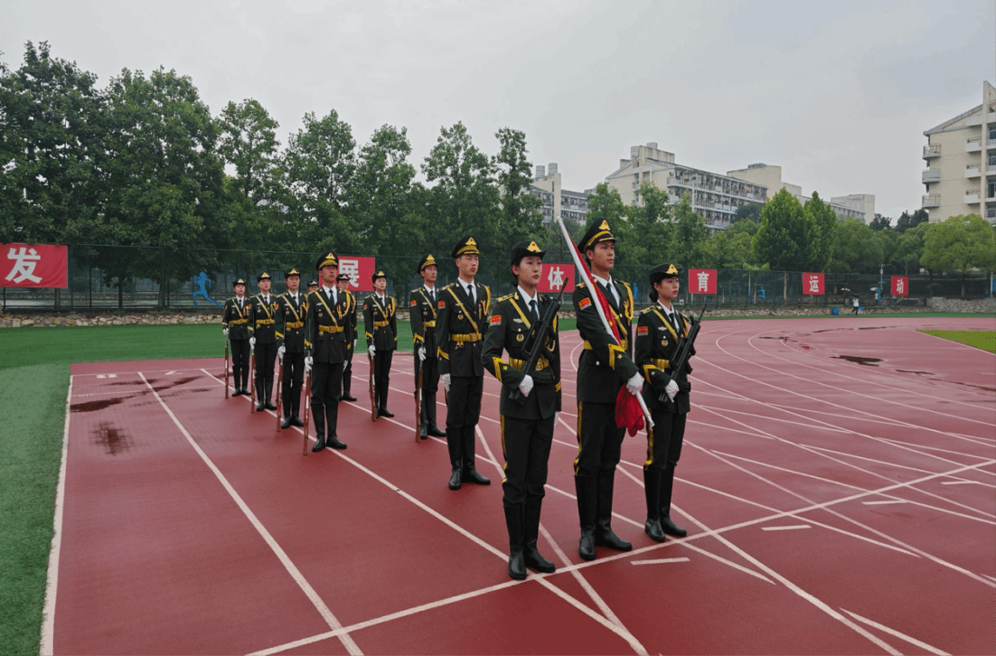 用信仰护卫国旗,以热血激扬青春。为进一步弘扬爱国主义精神,激励新一届国旗护卫队队员传承光荣使命,2024年6月,国旗下的思政课暨国旗护卫队交接仪式在学校操场隆重举行。校党委委员陈琪、学生处负责人、国旗护卫队指导老师以及校级学生干部、国旗护卫队成员和各学院入团积极分子近400人参加。