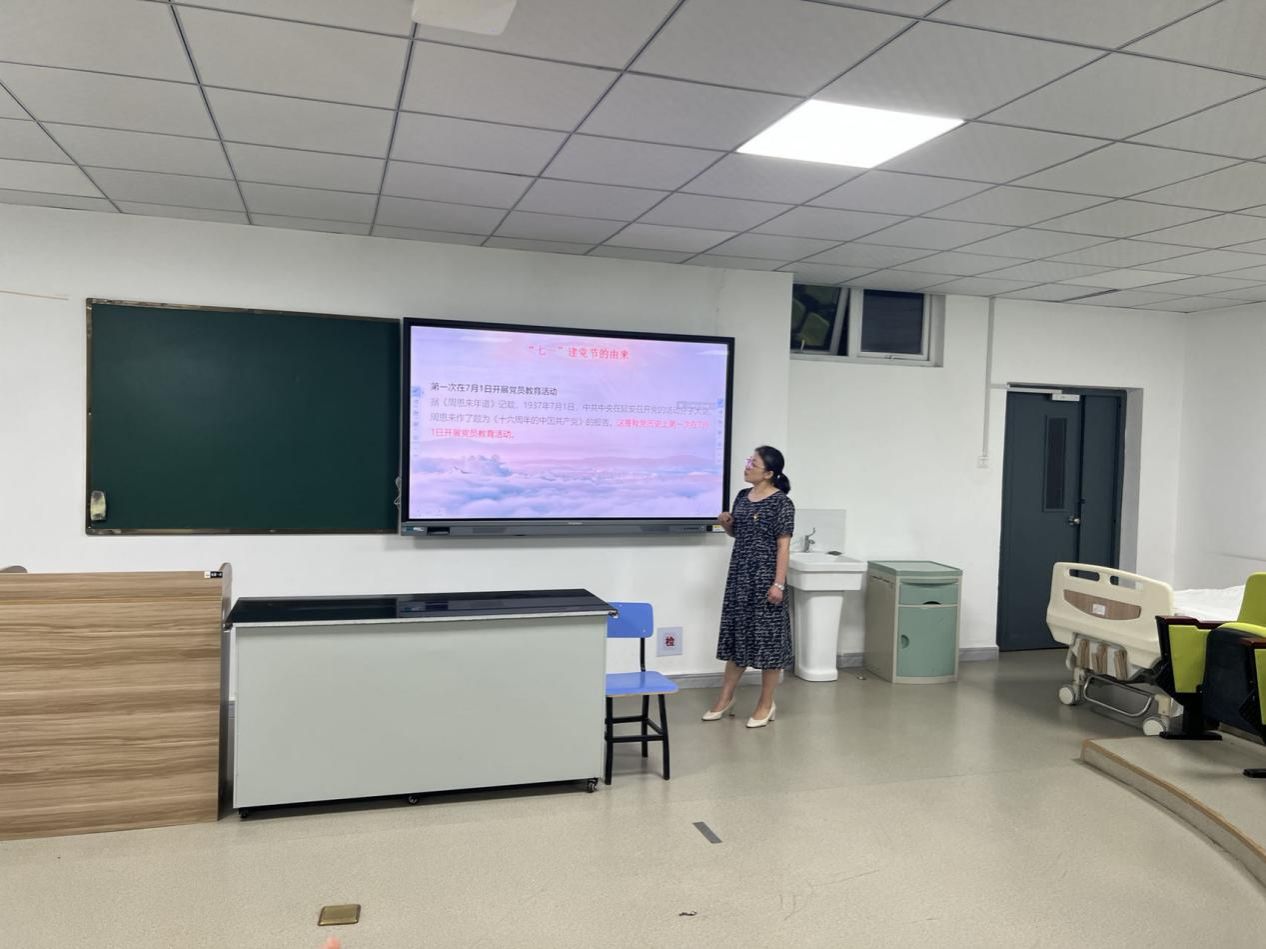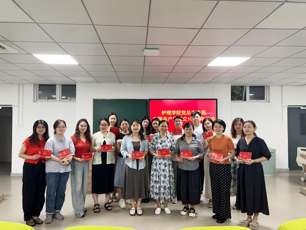 为庆祝中国共产党成立103周年,弘扬伟大建党精神,增强全体党员教师的凝聚力、战斗力和号召力,7月1日,护理学院党总支组织开展以“知党情、强党性、感党恩、严党纪、正党风、促党建、跟党走”为主题的党日活动,活动由党总支副书记路红春主持,全体党员教师参加。