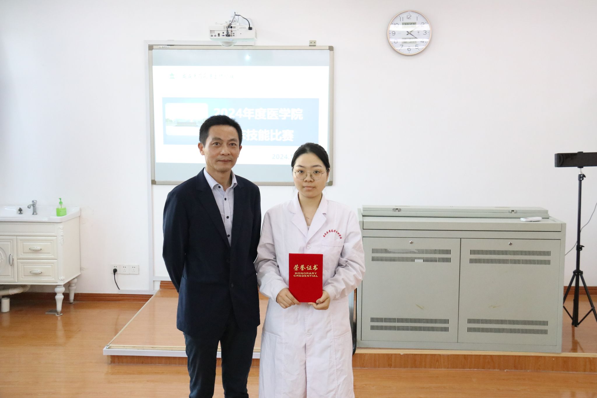 校党委委员刘毅对获奖选手表达了热烈的祝贺,同时也对医学院对比赛的精心筹备和有效组织给予了充分的肯定。指出比赛是一场技能与风采的展示,检验了参赛学生的职业素养、技能水平、临床思维和专业综合能力。临床技能比赛不仅是一次技能大比武,更是一个师生交流展示的平台,要以此次比赛为契机,探索临床医学教育的新模式、新方法,为培养高质量医学人才不懈努力。