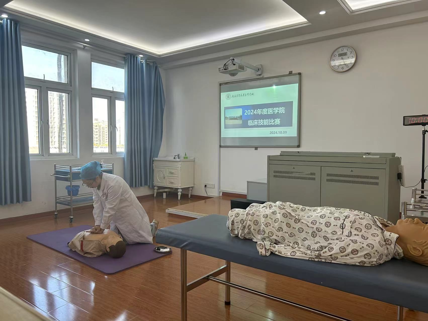 为营造良好教学氛围,激励临床医学专业学生不断提升临床综合素养,培养适应社会发展、服务人民健康新需求的高水平医学人才,医学院于2024年10月9日举办临床医学专业学生技能比赛。校党委委员刘毅出席比赛,医学院班子成员、各教研室教师代表以及2024级临床专业学生近百余人到场观摩。