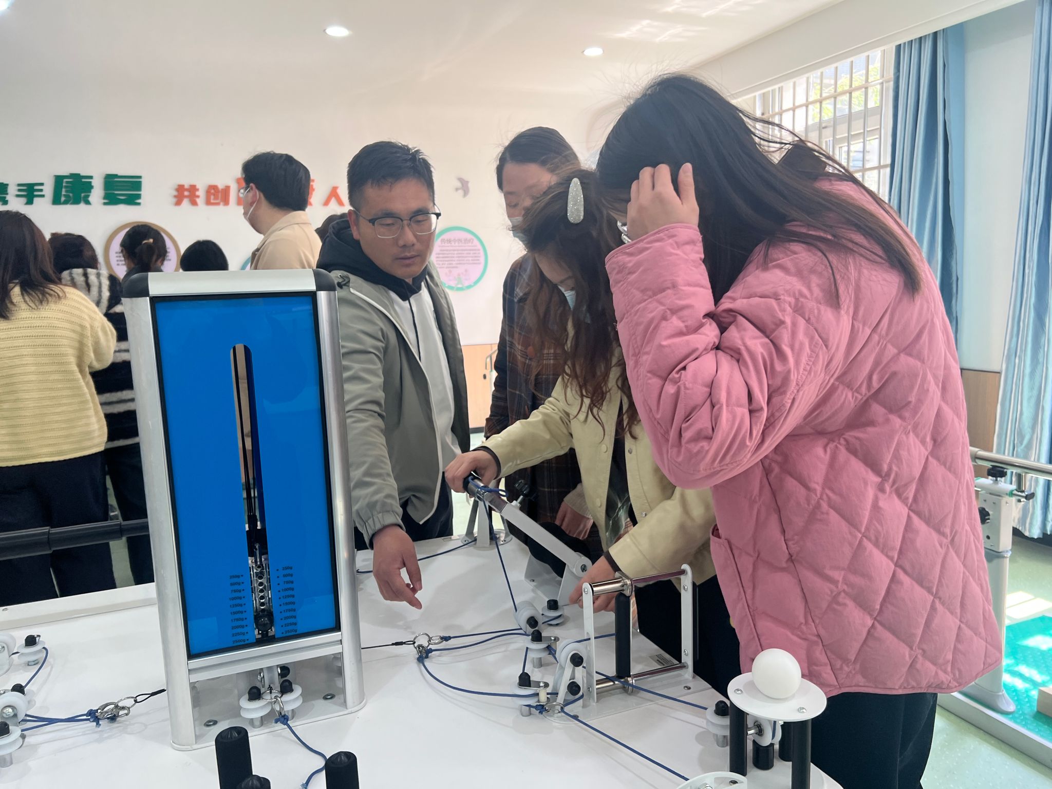 老师们首先了解各实训室的功能与养老机构对应的场景,熟悉了各类适老化家具和居室内各类智能化设备。参加各仪器设备的使用培训,从各种护理床功能展示,到智能健康一体机、人体成分分析仪等健康检测设备,平衡功能评定与训练系统、手功能康复机器人等康复训练器械的试测。通过培训,老师们对康养领域中常用的仪器设备、各种智能系统等都有所了解。