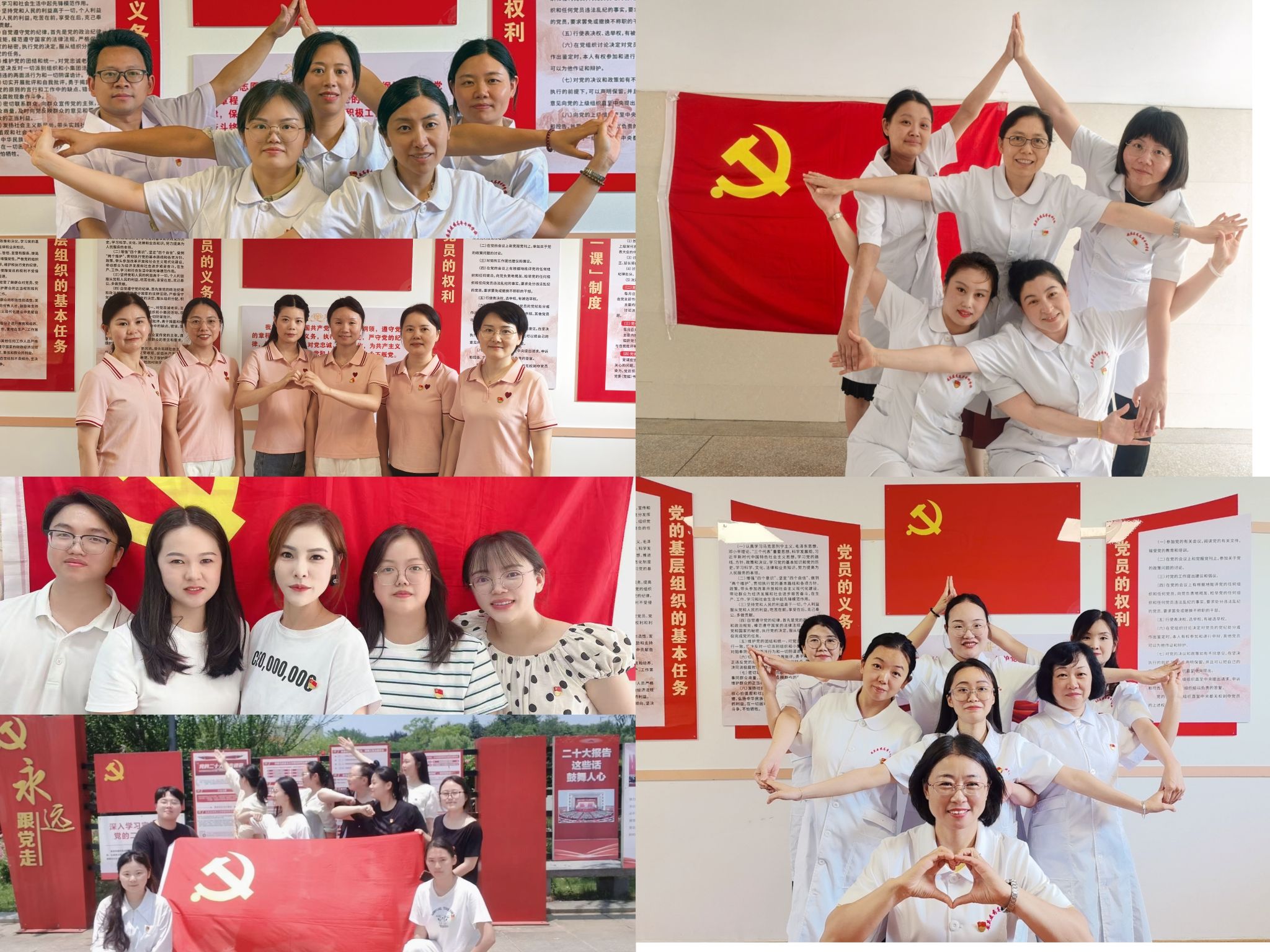 活动最后,“我与党旗合张影” 创意合照展示环节将现场气氛推向高潮。每位党员充分发挥创新创意,以独特的方式与党旗合影留念。有的党员摆出象征团结奋进的造型,有的党员结合护理专业特色表达对党的忠诚,一张张照片饱含着党员们对党的热爱。这种生动、直观的方式,进一步增强了党员的集体荣誉感和归属感,也让红色基因在党员心中扎根生长。