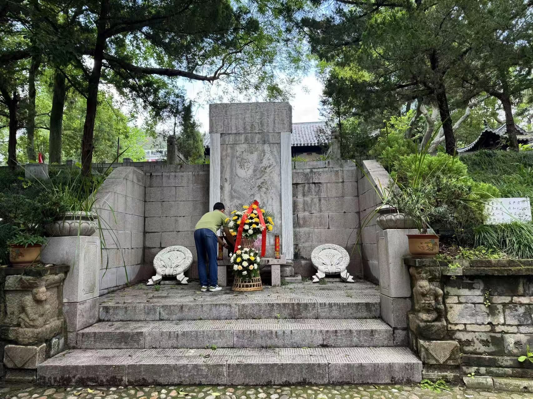 在野寨中学抗日阵亡将士公墓,医学院党总支庄重举行缅怀仪式,向公墓敬献花篮。全体同志庄严肃穆,默哀致敬,缅怀抗战英烈,深刻铭记历史。在讲解员的带领下,全体同志参观学习,接受爱国主义教育,进一步增强国防意识与爱国情怀,不忘初心,牢记使命。