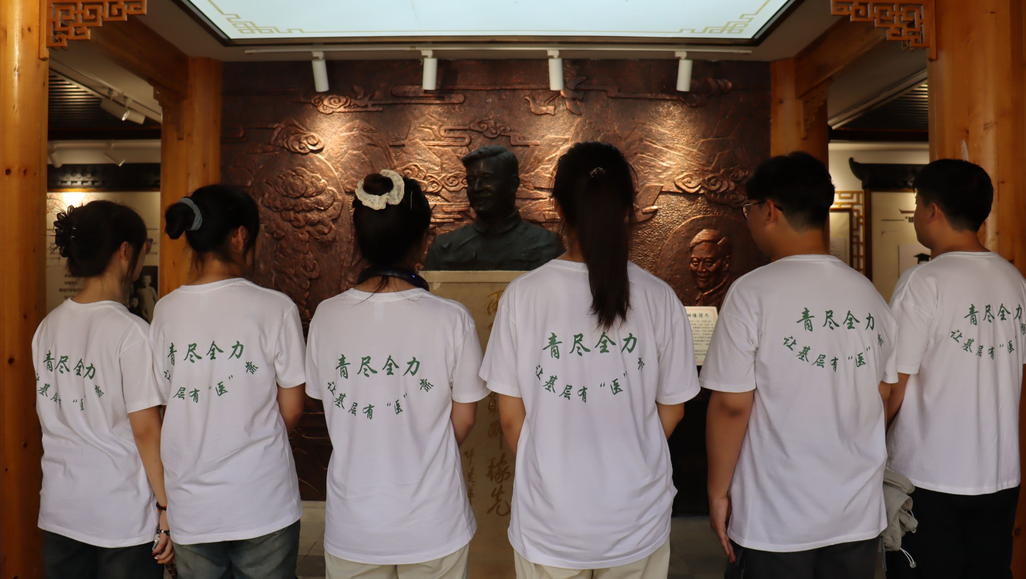 实地探访触摸历史温度,赓续精神血脉。团队成员一行来到宜秀区五横乡的铁砚山房,实地感受两邓故居的人文素养。在邓稼先诞生的西厢房前,医学院学子凝视着墙上的岁月斑痕,恰与建党104年的红色血脉遥相呼应,故居展厅里泛黄的演算稿纸、戈壁滩上尘封的相片,都在诉说着那段“用算盘打出核公式”的奇迹。当队员们轻抚邓公幼时居住的木阁楼,不禁感慨“这里吹过的风,都带着风骨,而我们青年医学生的风骨就是用生命守护生命。先辈以科技护国,我辈当以医术护民。”